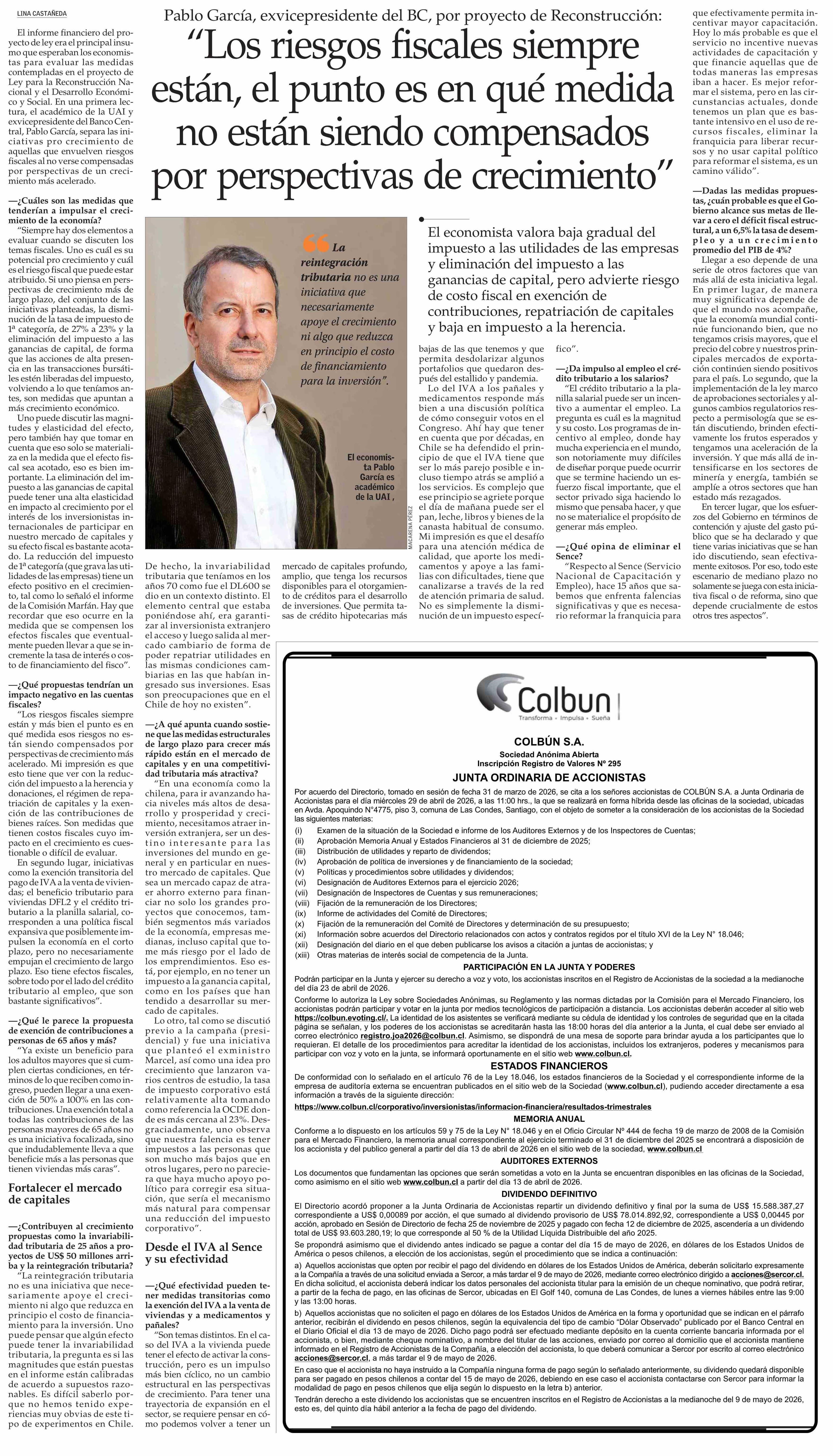 “Los riesgos fiscales siempre están, el punto es en qué medida no están siendo compensados por perspectivas de crecimiento” 27-04-2026 El Mercurio |