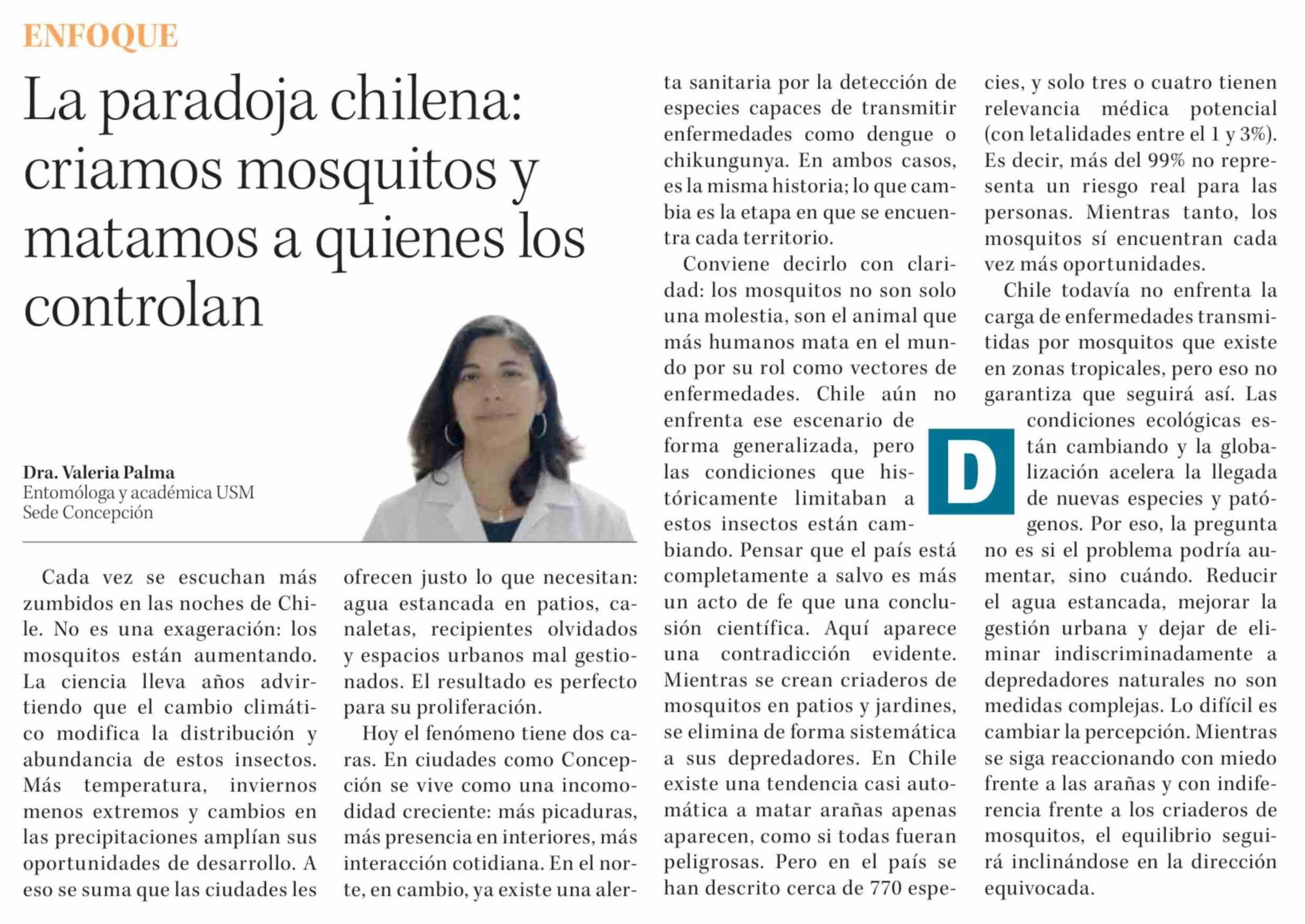 Título: Columnas de Opinión: La paradoja chilena: criamos mosquitos y matamos a quienes los controlan