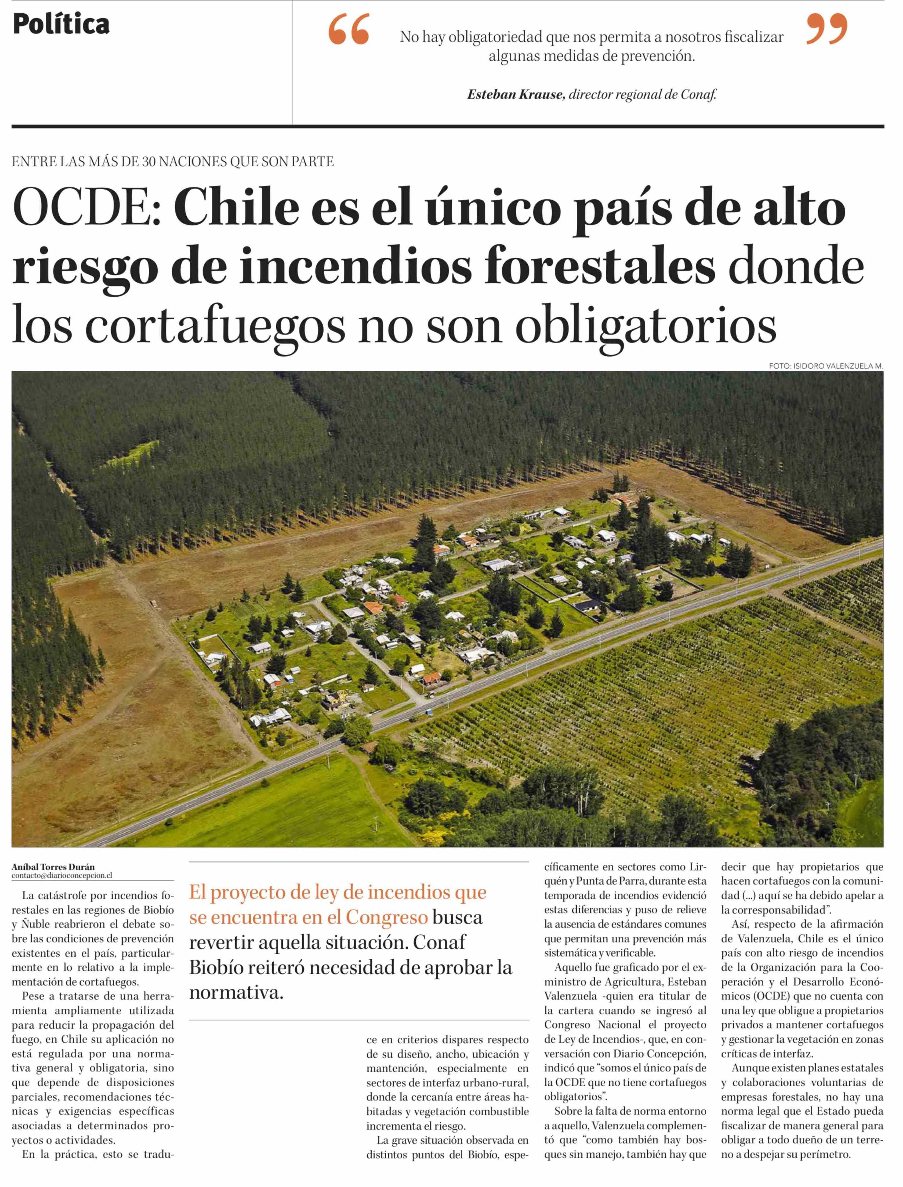 Título: OCDE: Chile es el único país de alto riesgo de incendios forestales donde los cortafuegos no son obligatorios