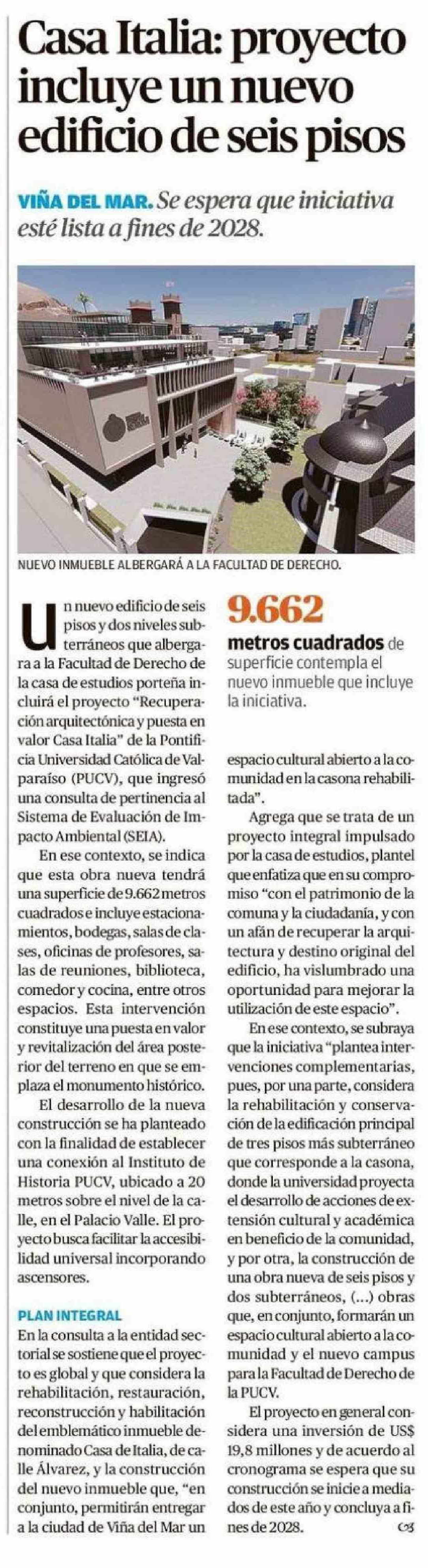 Casa Italia: proyecto incluye un nuevo edificio de seis pisos 06-01-2026 El Mercurio de Valparaíso |