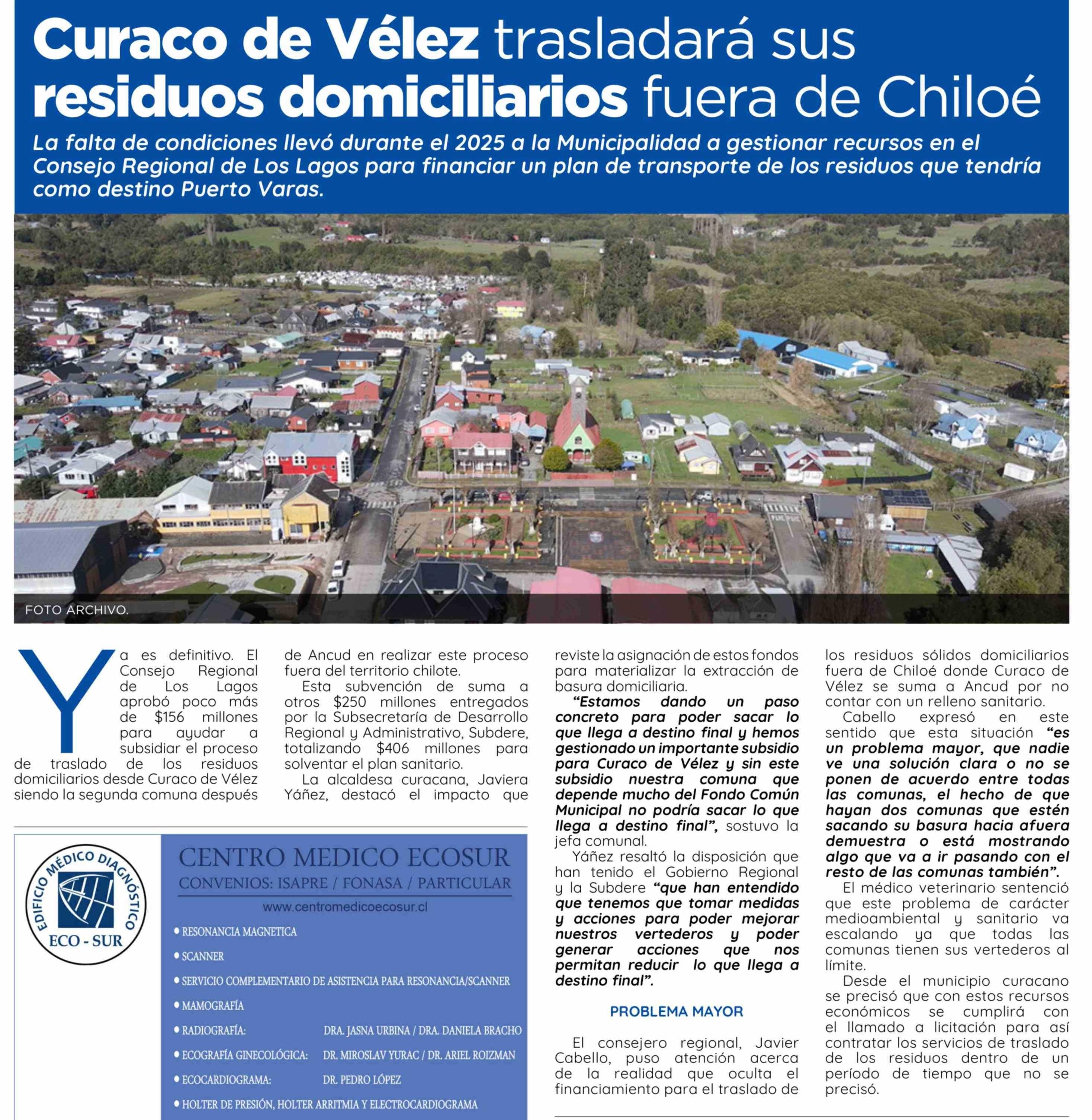 Curaco de Vélez trasladará sus residuos domiciliarios fuera de Chiloé 18-02-2026 El Insular |