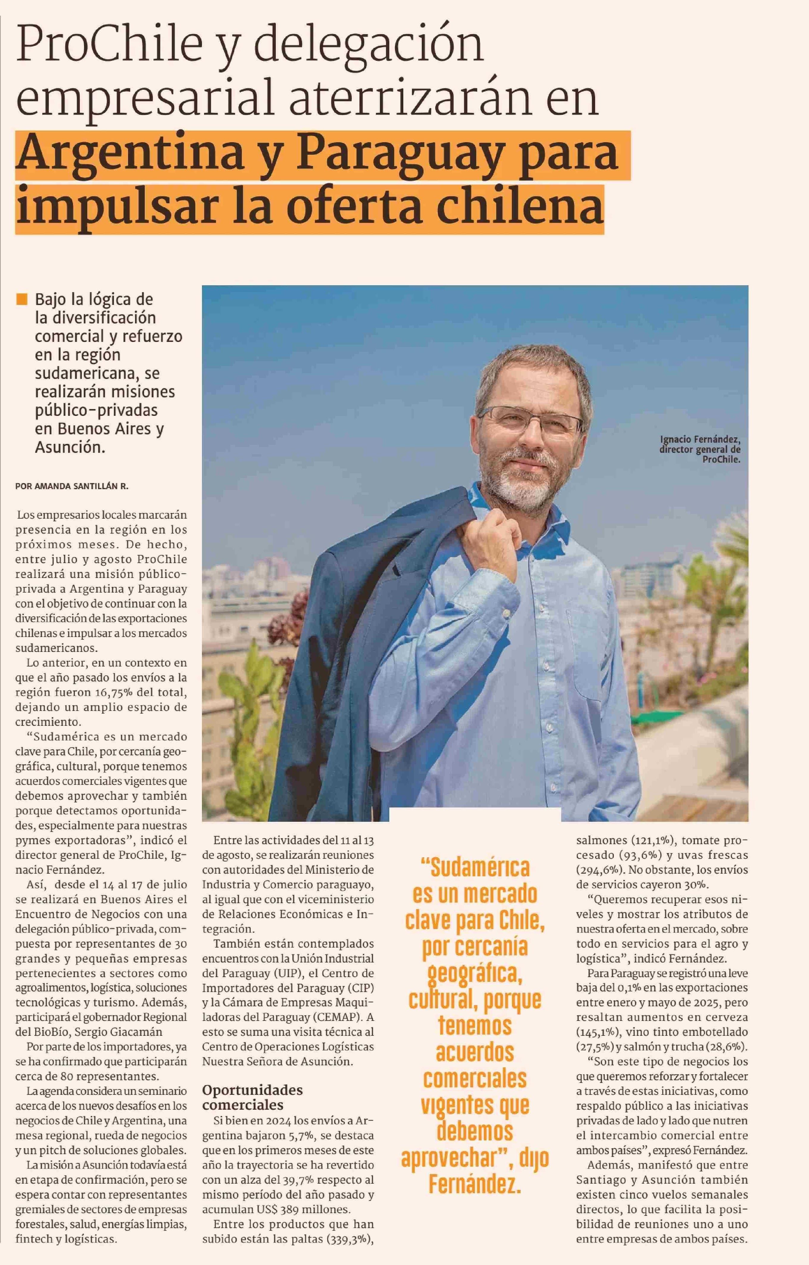 Título: ProChile y delegación empresarial aterrizarán en Argentina y Paraguay para impulsar la oferta chilena