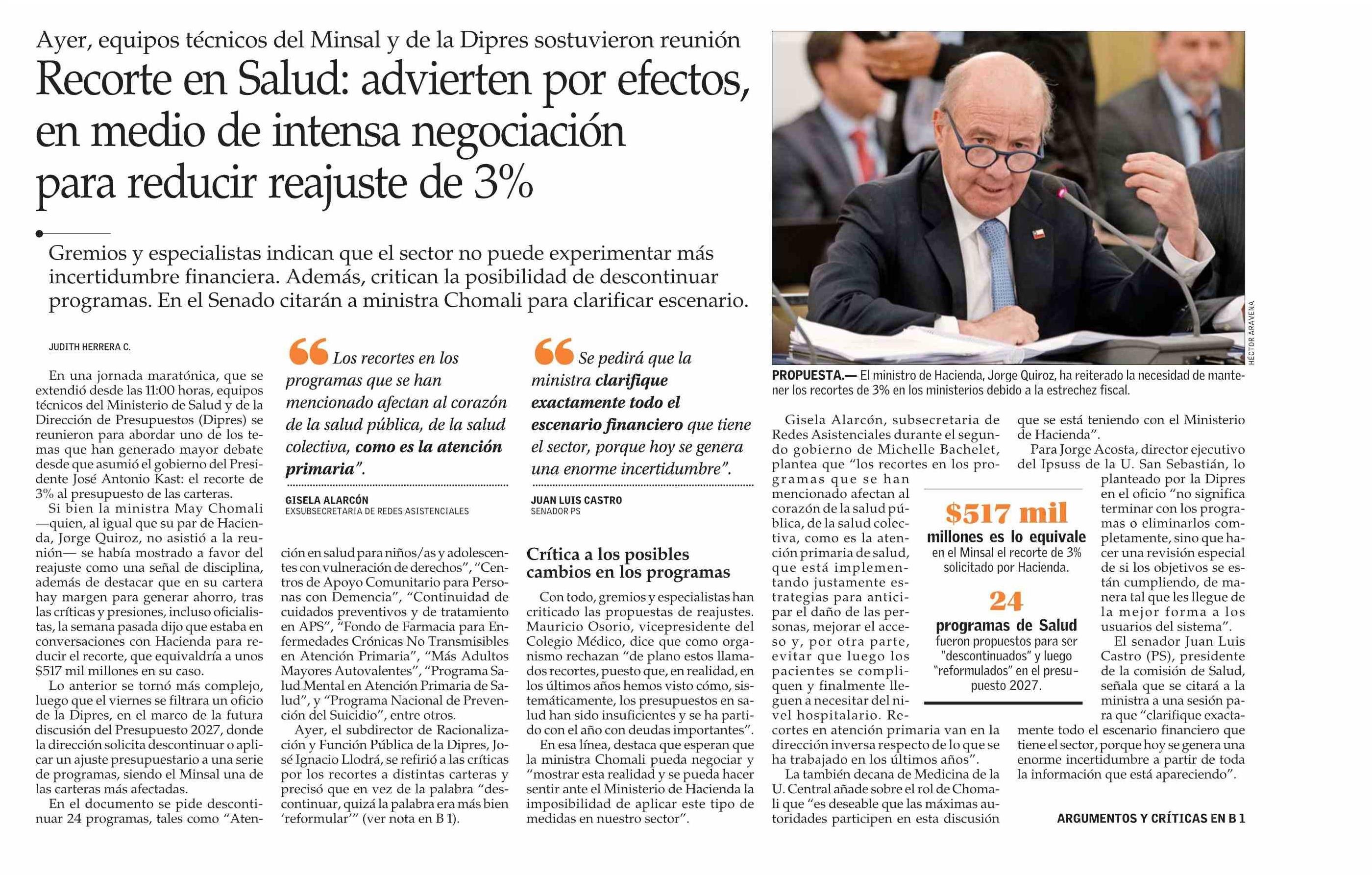 Título: Recorte en Salud: advierten por efectos, en medio de intensa negociación para reducir reajuste de 3%
