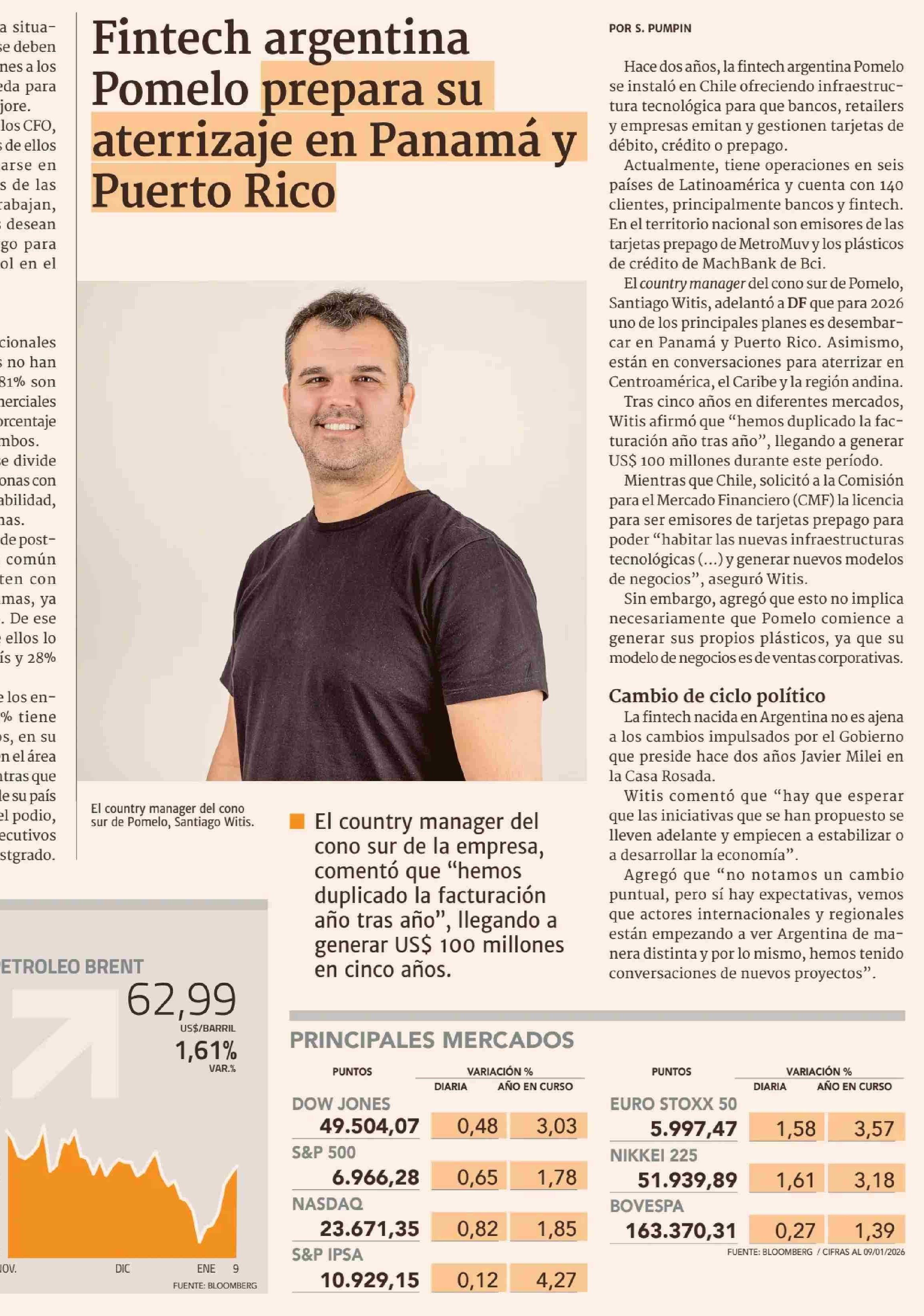 Fintech argentina Pomelo prepara su aterrizaje en Panamá y Puerto Rico 12-01-2026 Diario Financiero |