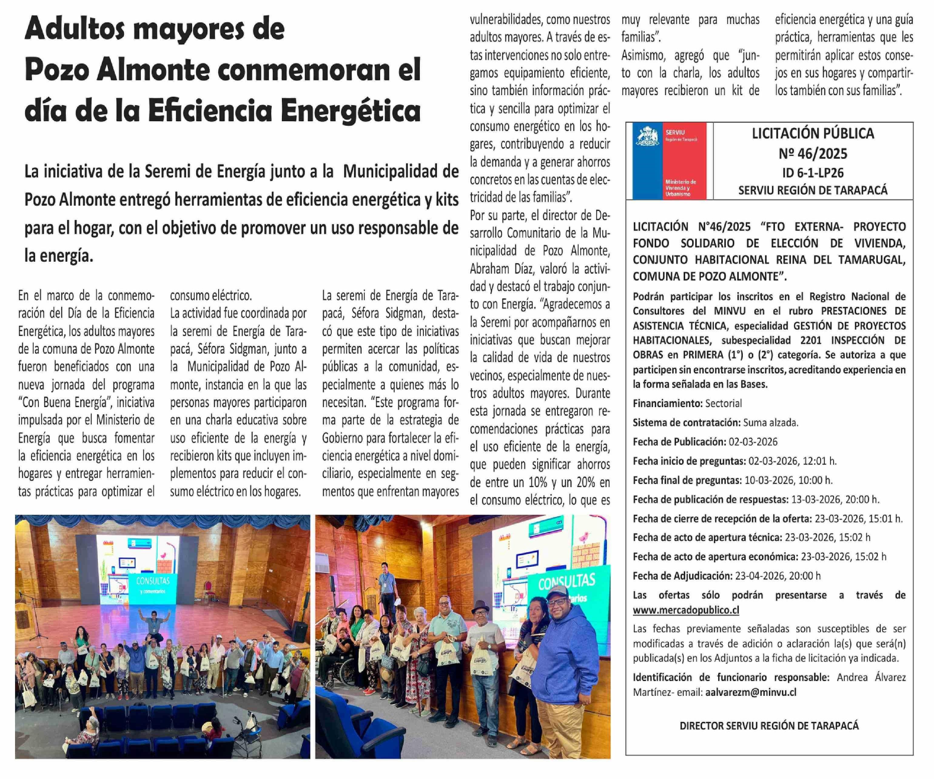 Título: Adultos mayores de Pozo Almonte conmemoran el día de la Eficiencia Energética