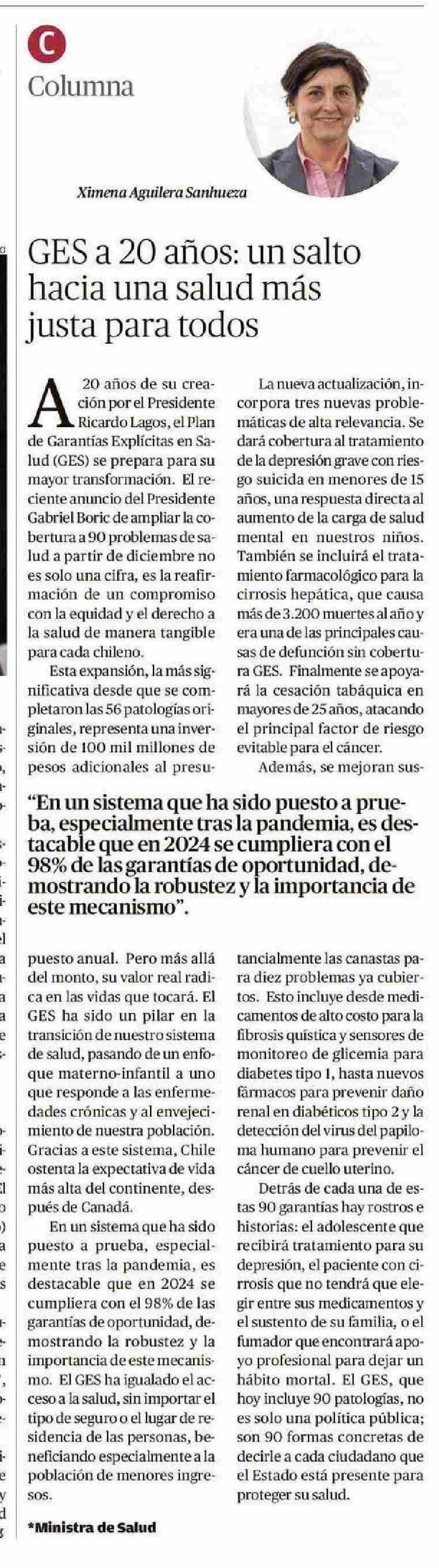 | Título: | Columnas de Opinión: GES a 20 años: un salto hacia una salud más justa para todos |