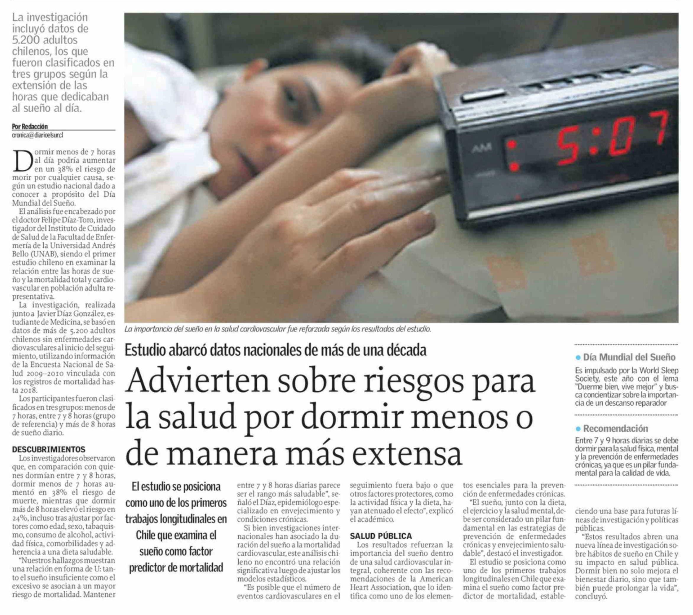 Título: Advierten sobre riesgos para la salud por dormir menos o de manera más extensa