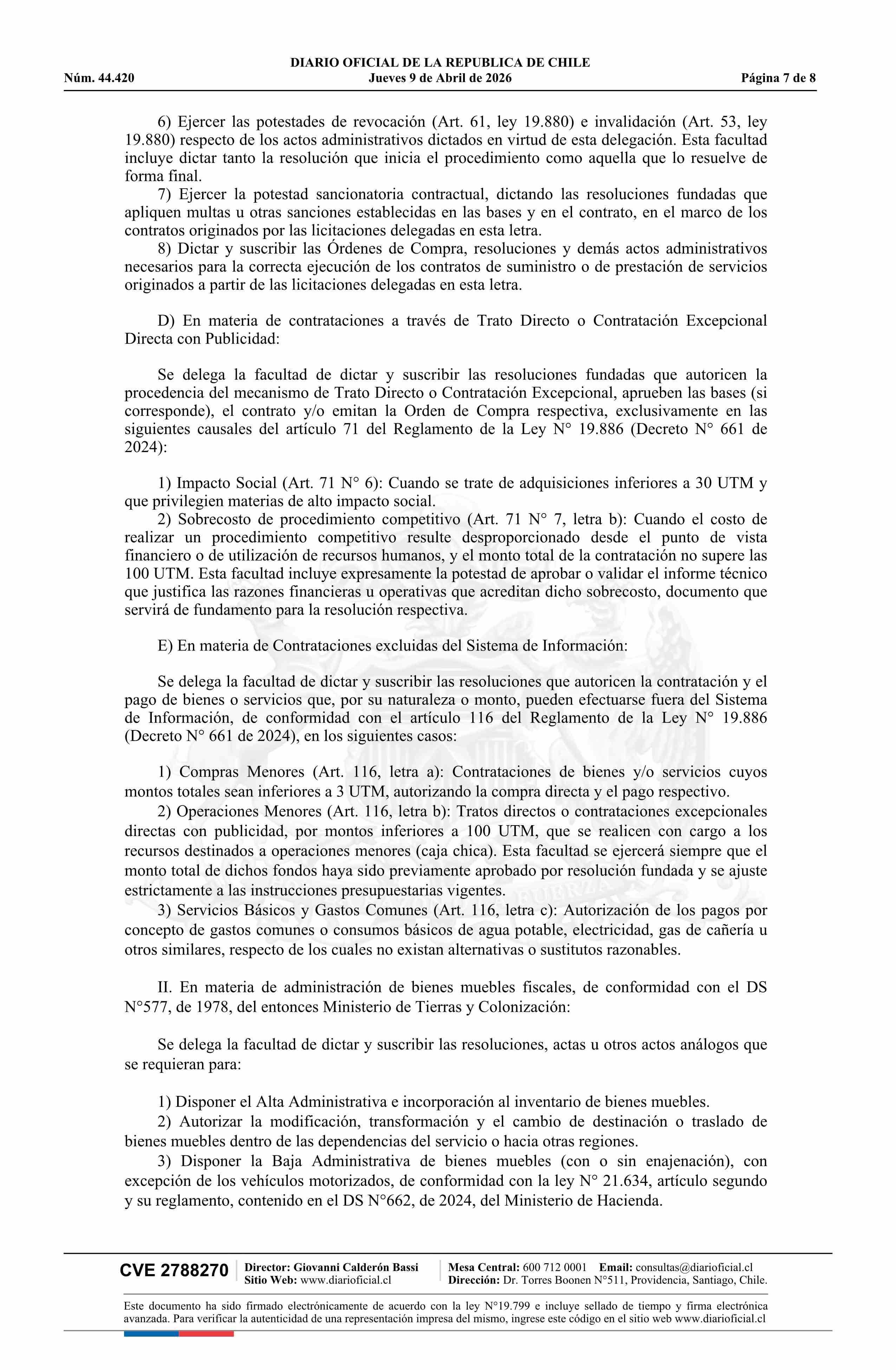 | Título: | Resolución exenta número 124, de 2026.- Delega facultades que señala y facultad de firmar por orden del Subsecretario(a) en materia que precisa y deroga resoluciones exentas que se indican |