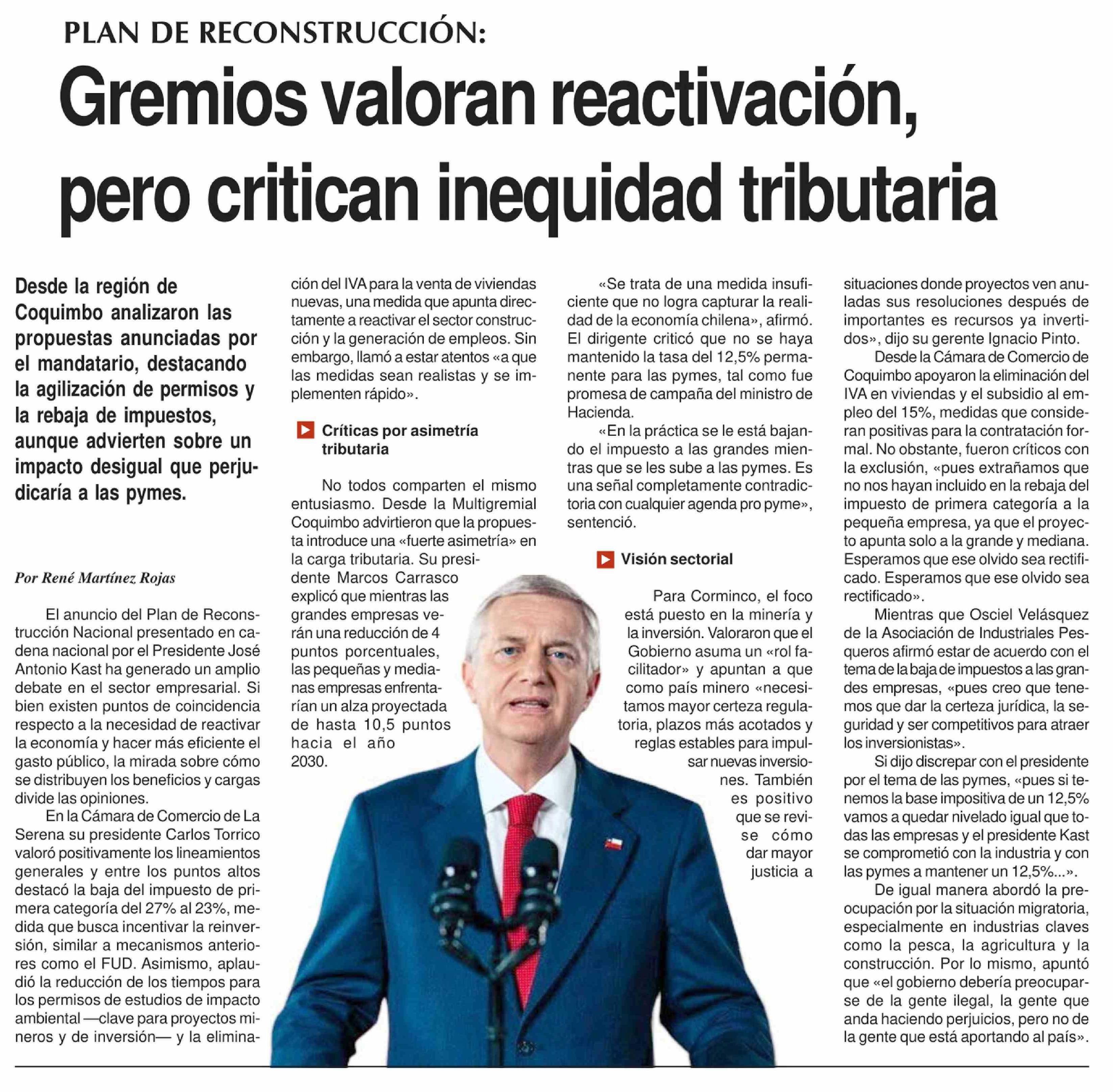 Gremios valoran reactivación, pero critican inequidad tributaria 17-04-2026 Diario la Región |