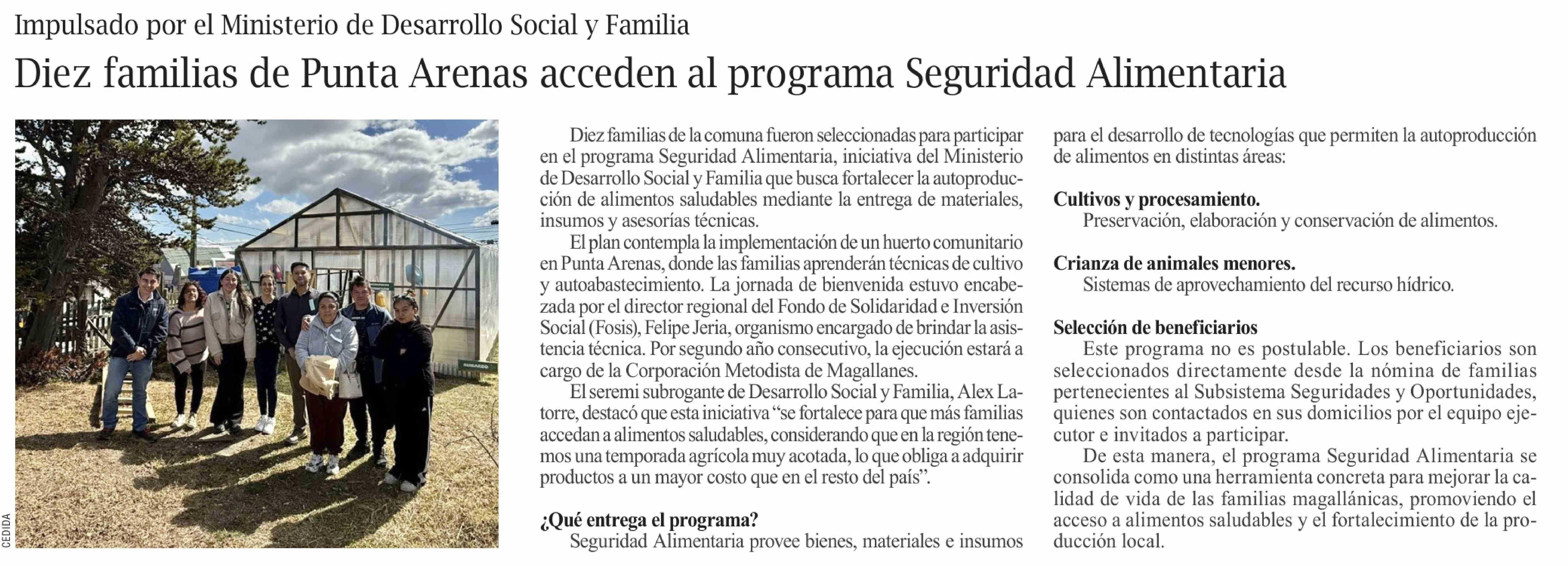 | Título: | Diez familias de Punta Arenas acceden al programa Seguridad Alimentaria |