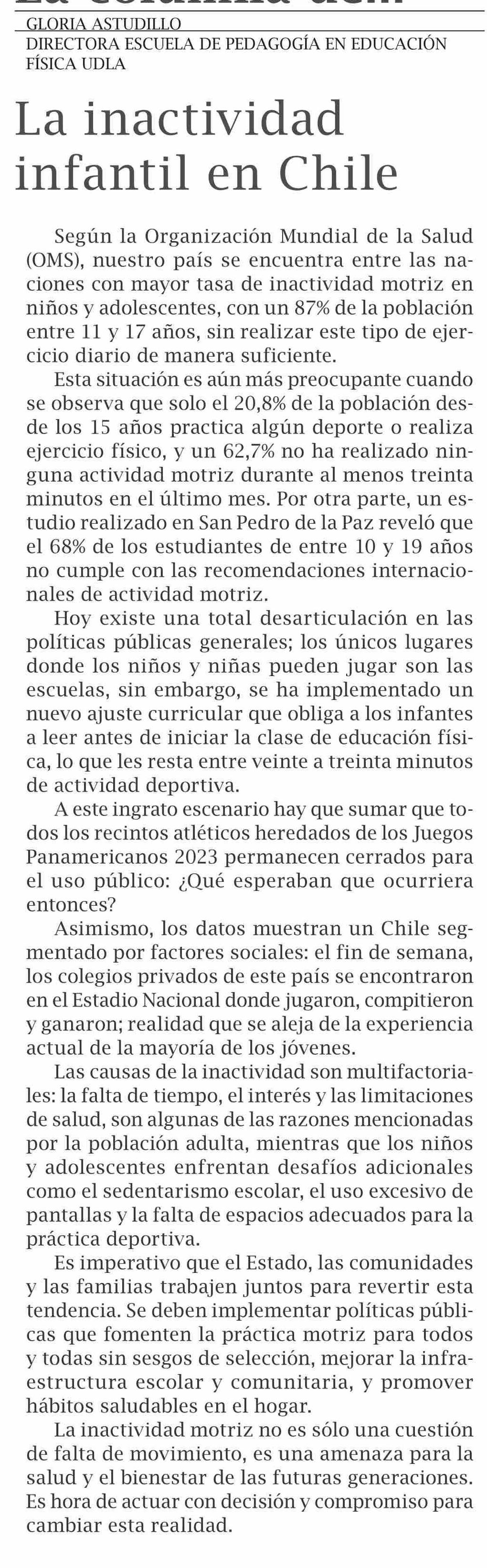 Columnas de Opinión: La inactividad infantil en Chile 07-06-2025 El Pingüino |