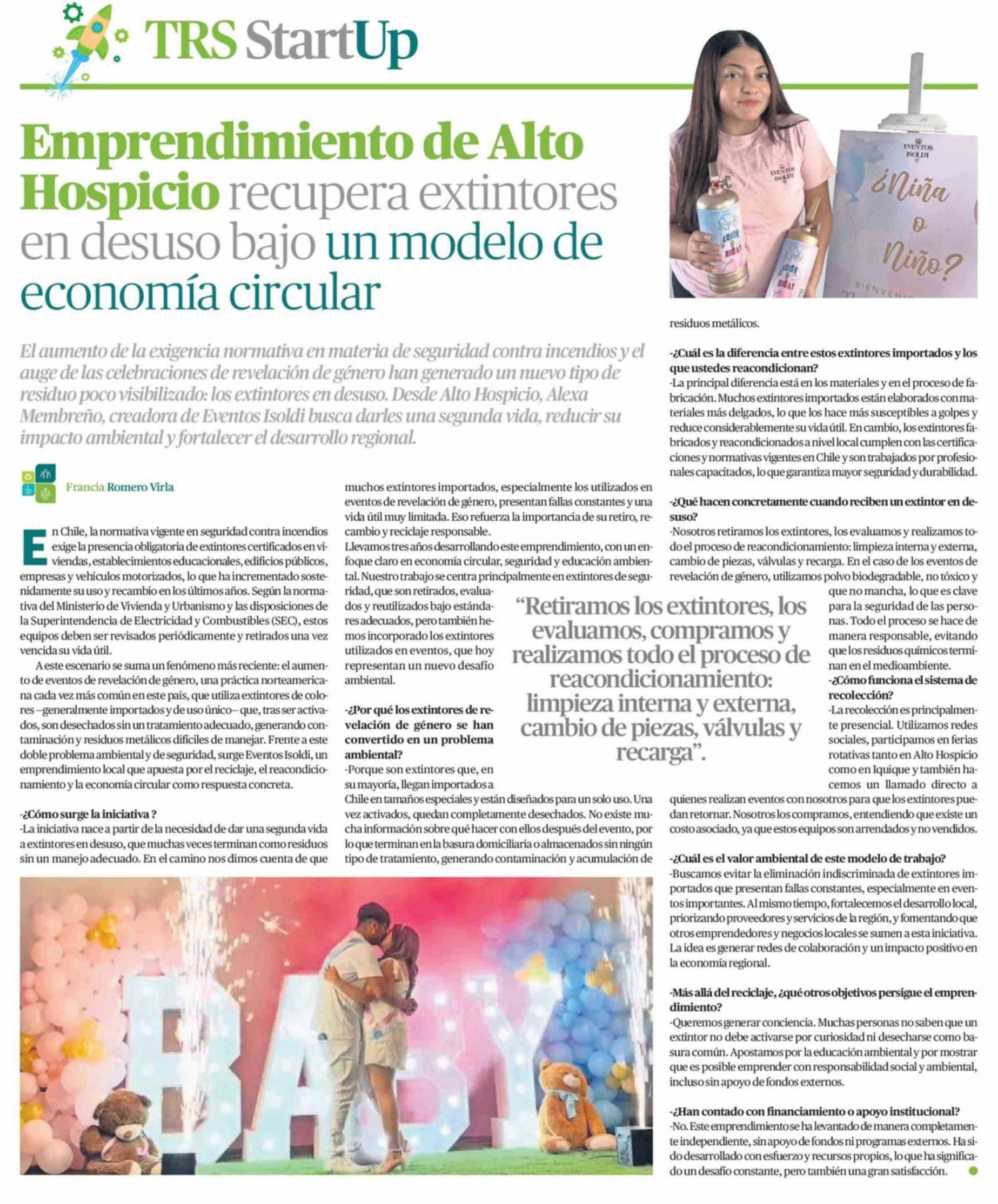 Título: Emprendimiento de Alto Hospicio recupera extintores en desuso bajo un modelo de economía circular