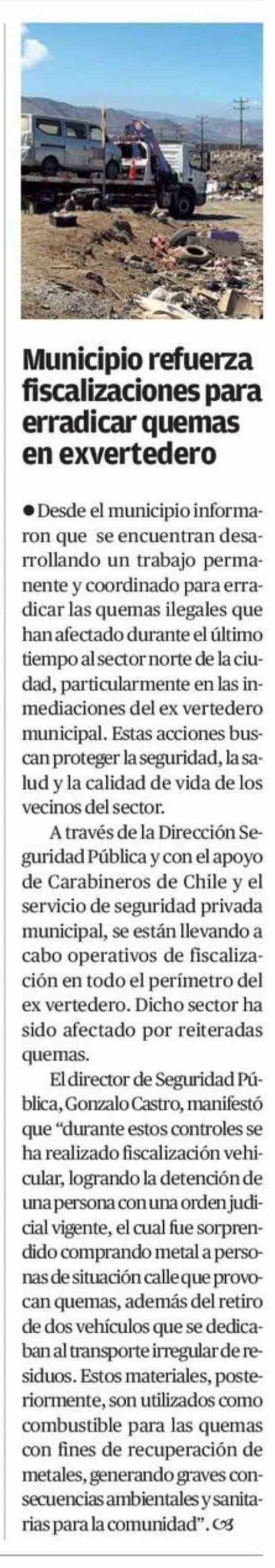 Municipio refuerza fiscalizaciones para erradicar quemas en exvertedero 28-01-2026 El Mercurio de Antofagasta |