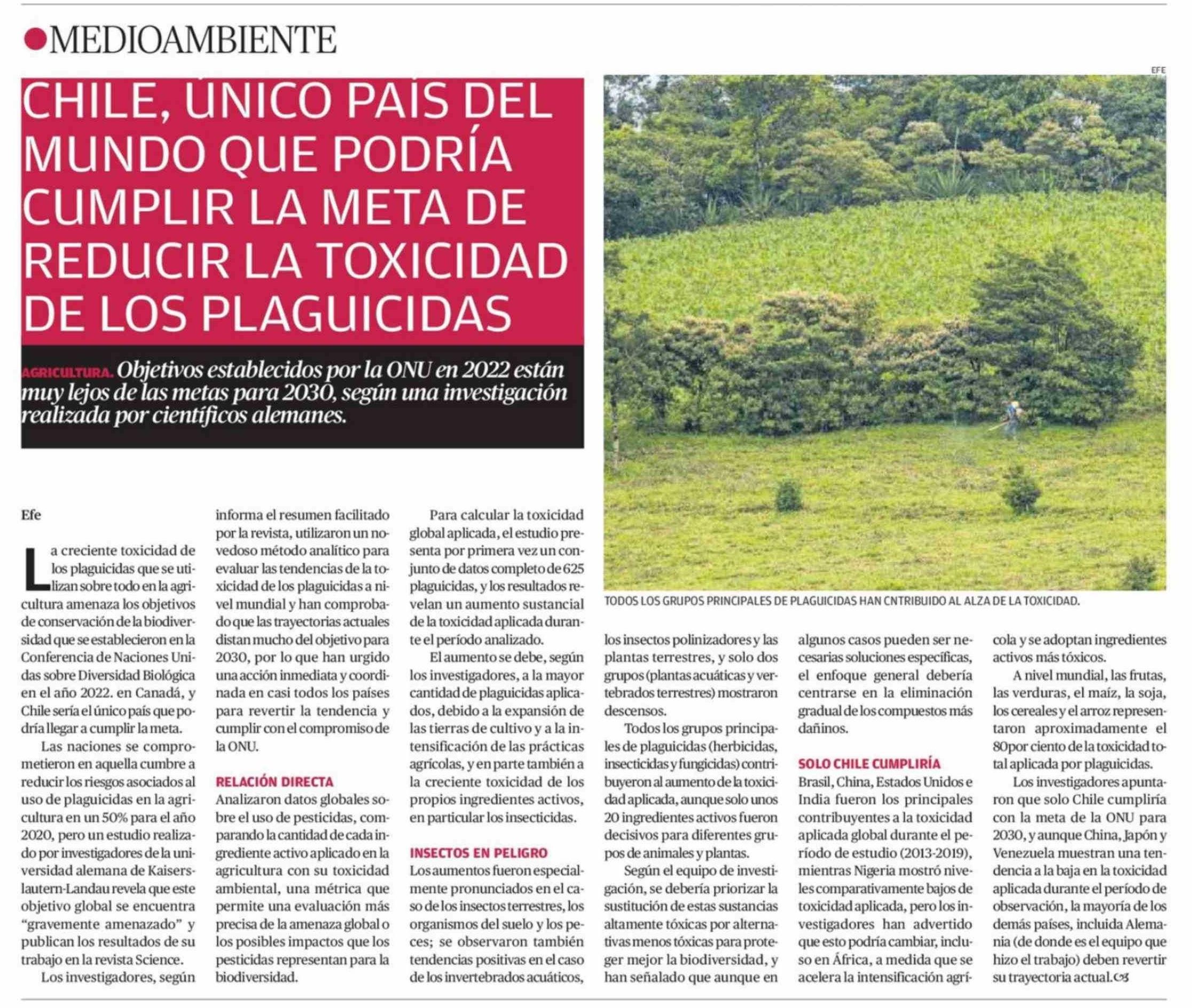 Título: CHILE, UNICO PAIS DEL MUNDO QUE PODRÍA CUMPLIR LA META DE REDUCIR LA TOXICIDAD DE LOS PLAGUICIDAS