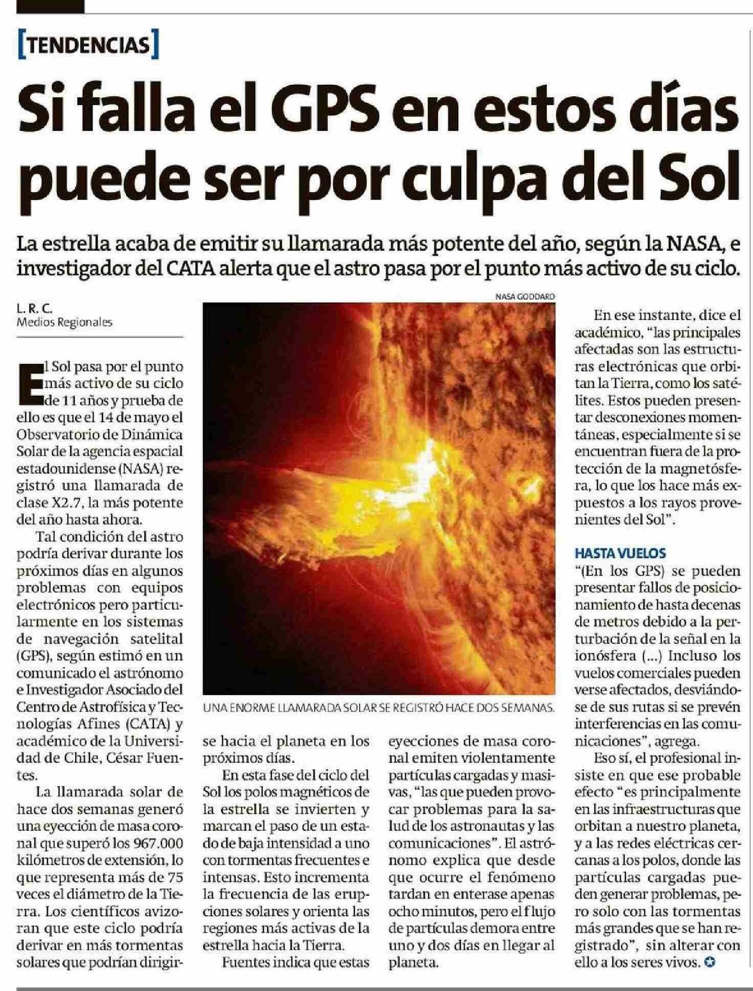 Si falla el GPS en estos días puede ser por culpa del Sol 30-05-2025 La Estrella de Chiloé |