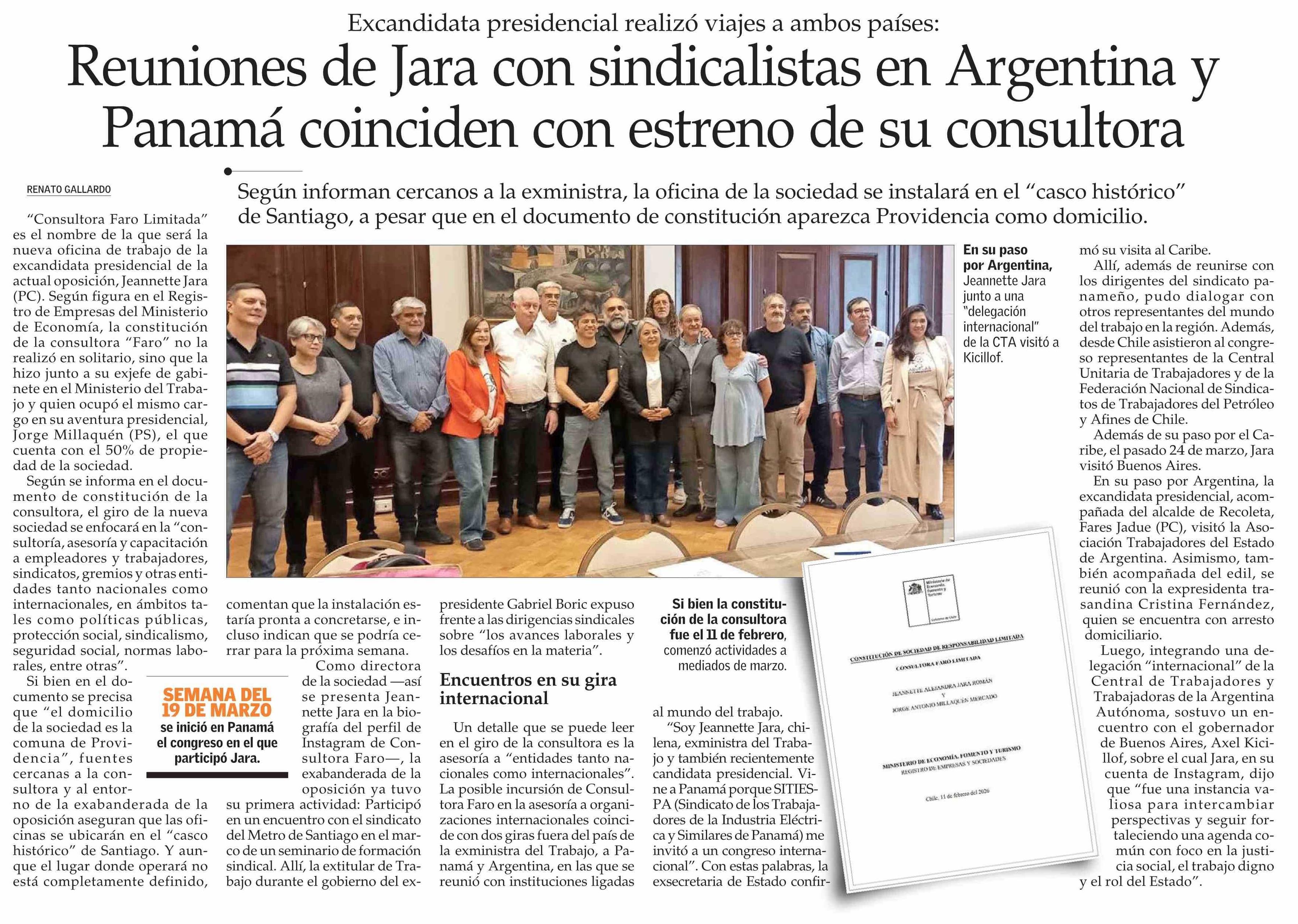 Título: Reuniones de Jara con sindicalistas en Argentina y Panamá coinciden con estreno de su consultora