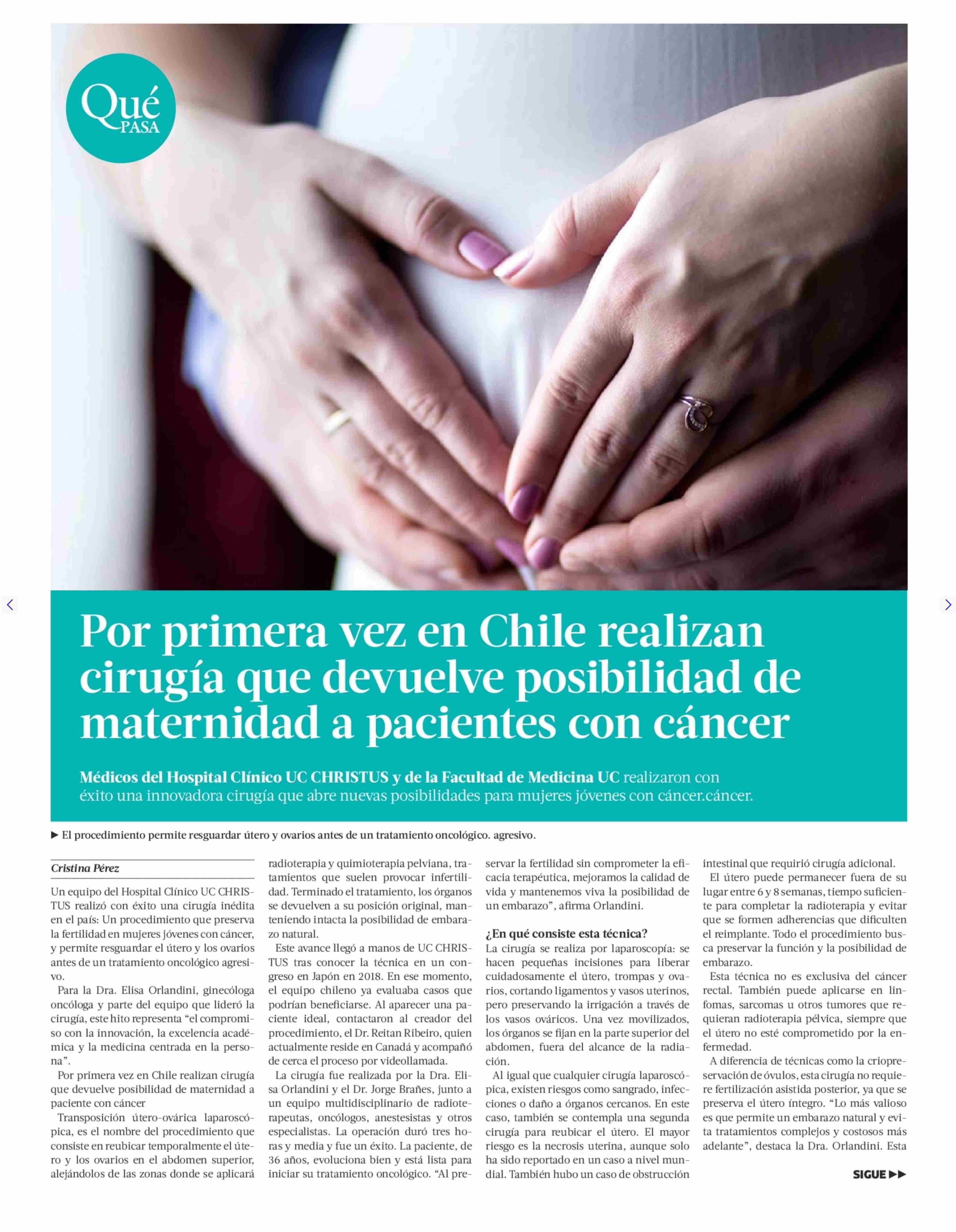 | Título: | Por primera vez en Chile realizan cirugía que devuelve posibilidad de maternidad a pacientes con cáncer |