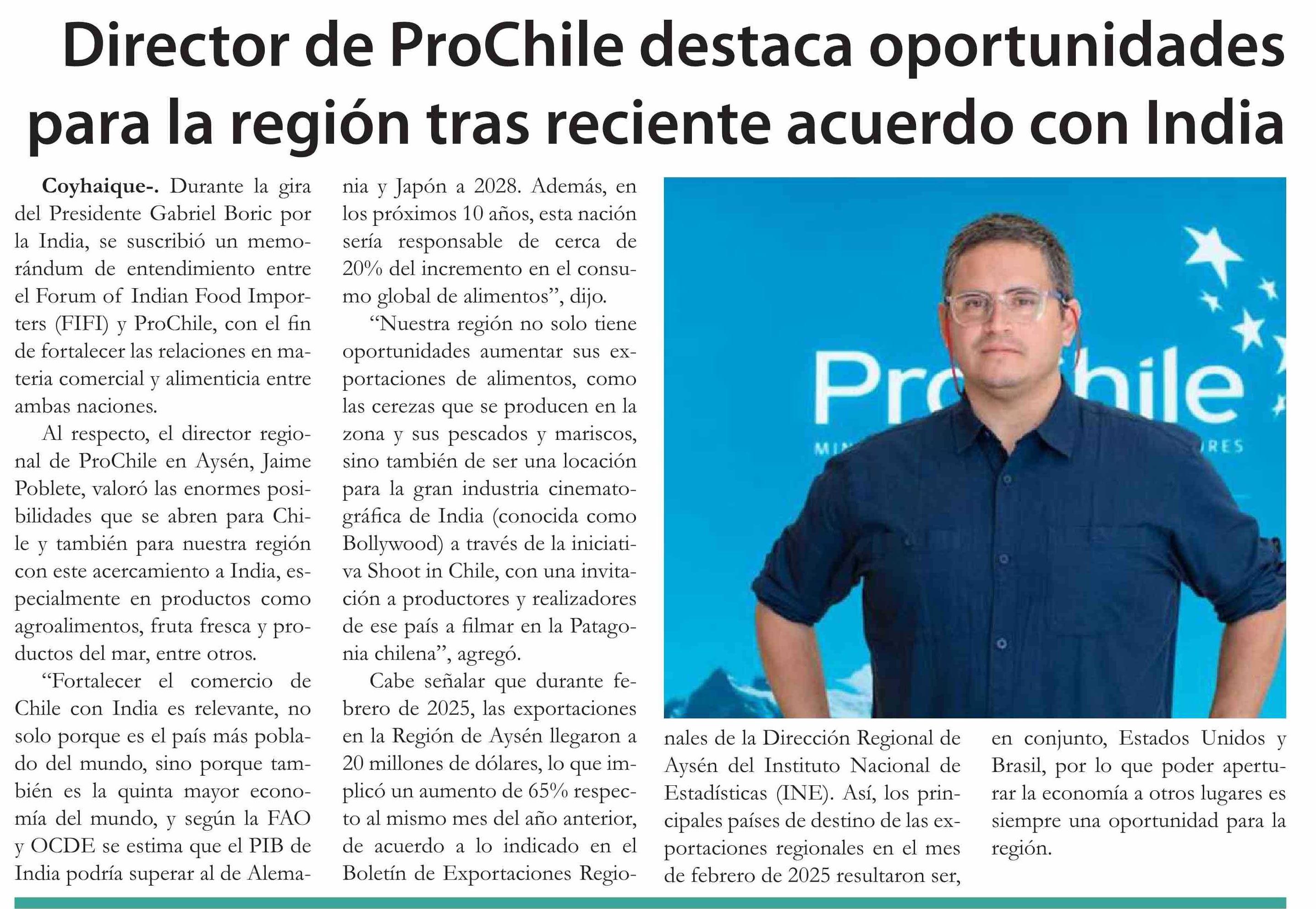 Director de ProChile destaca oportunidades para la región tras reciente acuerdo con India 13-05-2025 El Divisadero |