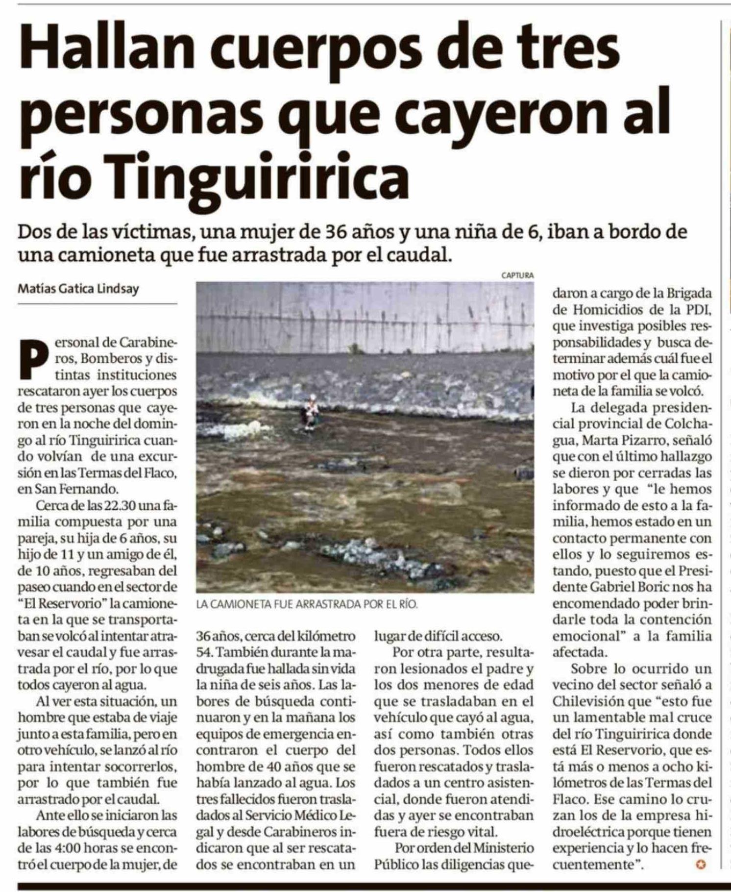 Título: Hallan cuerpos de tres personas que cayeron al río Tinguiririca