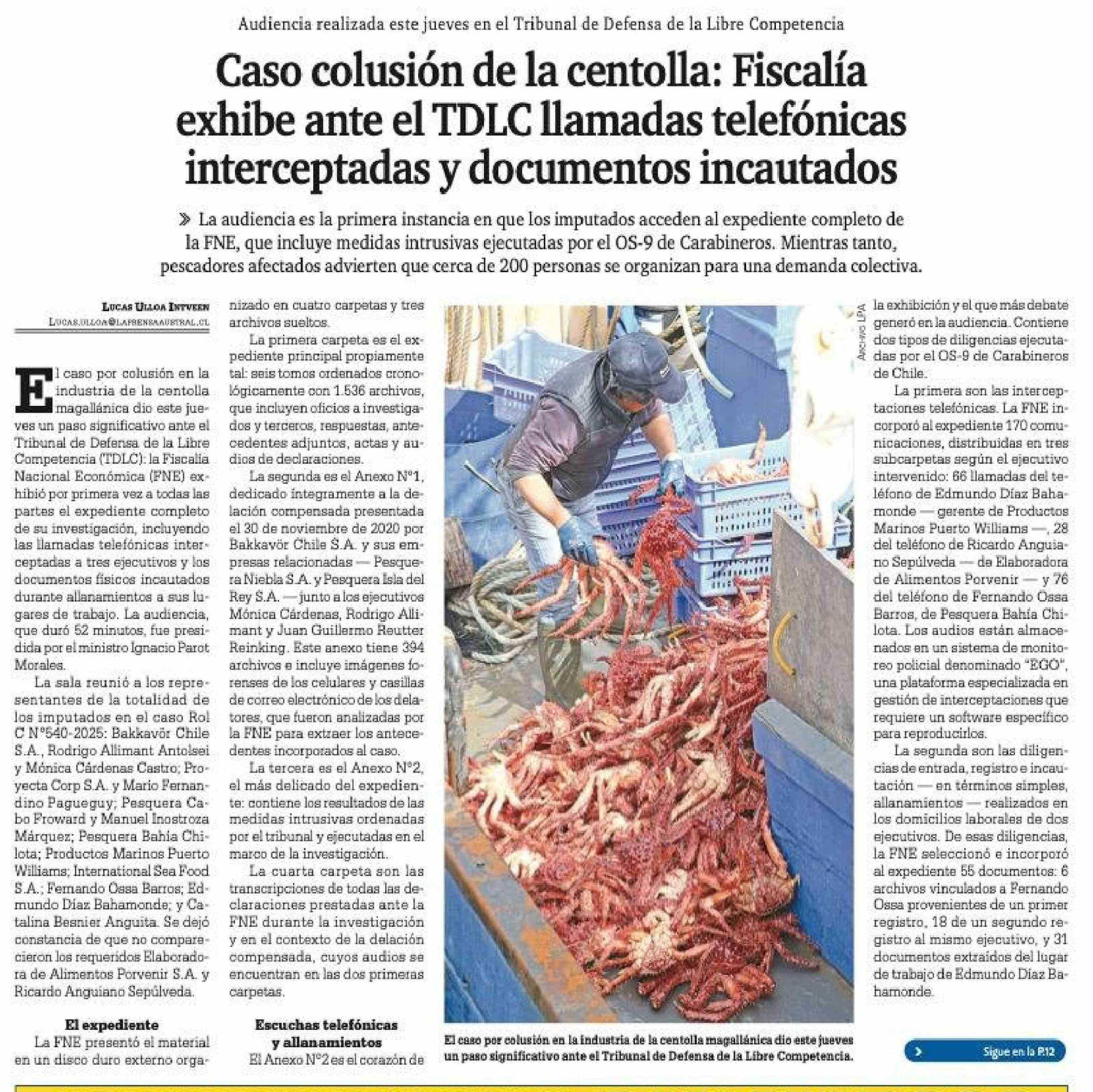 Título: Caso colusión de la centolla: Fiscalía exhibe ante el TDLC llamadas telefónicas interceptadas y documentos incautados