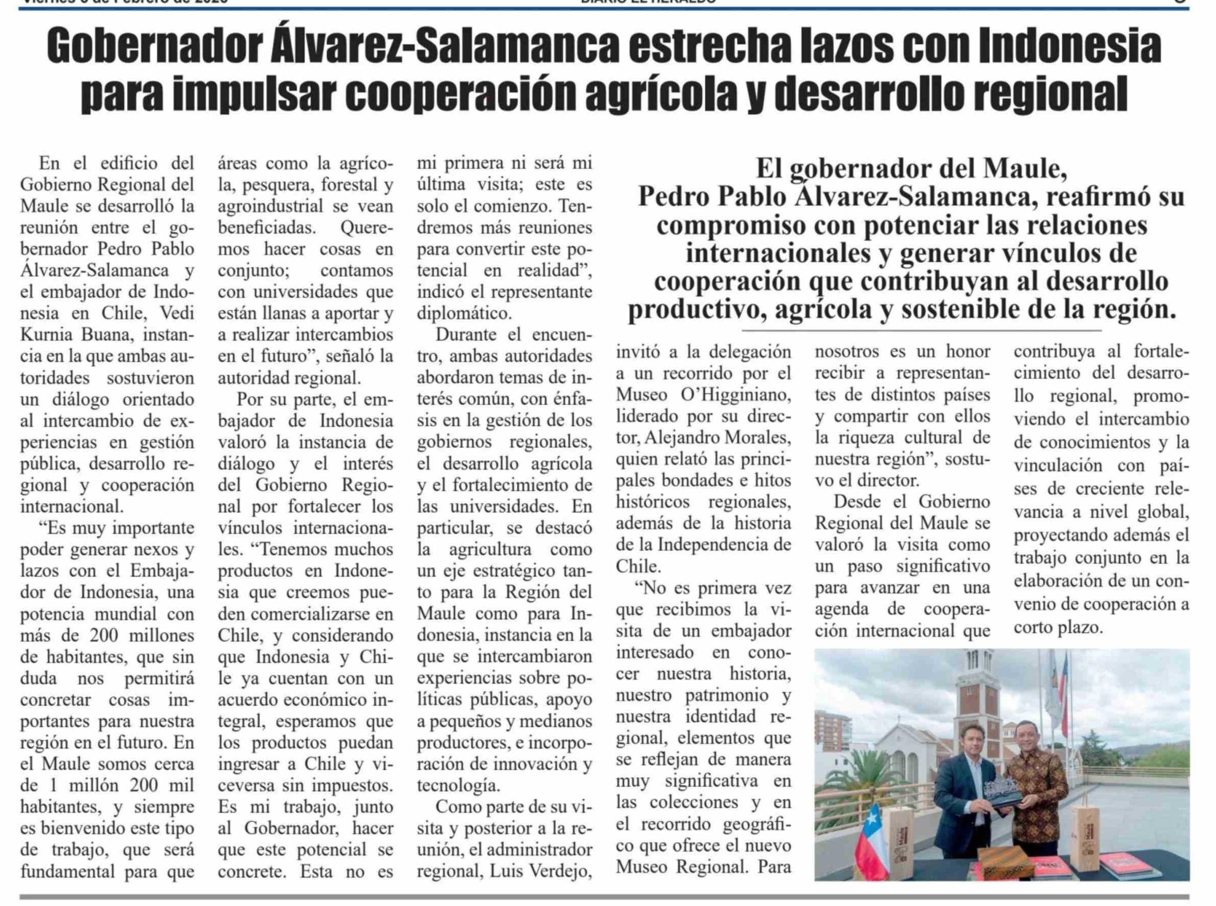 Gobernador Álvarez-Salamanca estrecha lazos con Indonesia para impulsar cooperación agrícola y desarrollo regional 06-02-2026 El Heraldo |