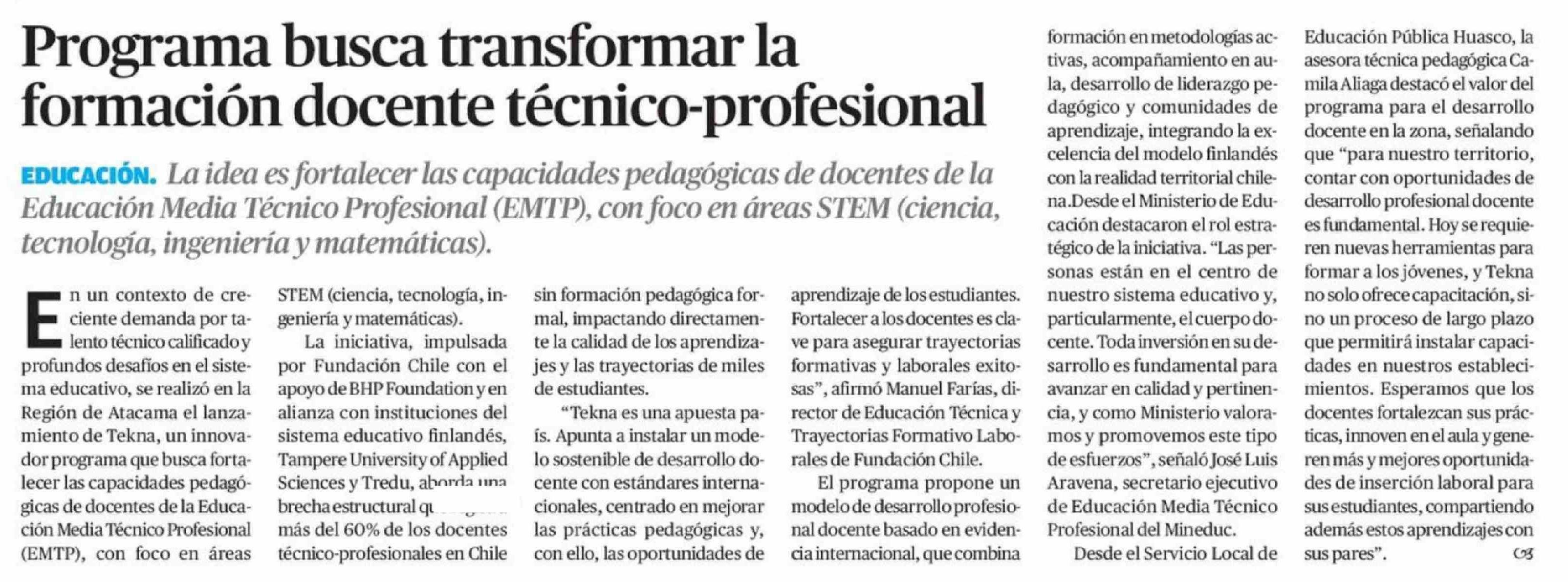 Programa busca transformar la formación docente técnico-profesional 29-04-2026 El Diario de Atacama |