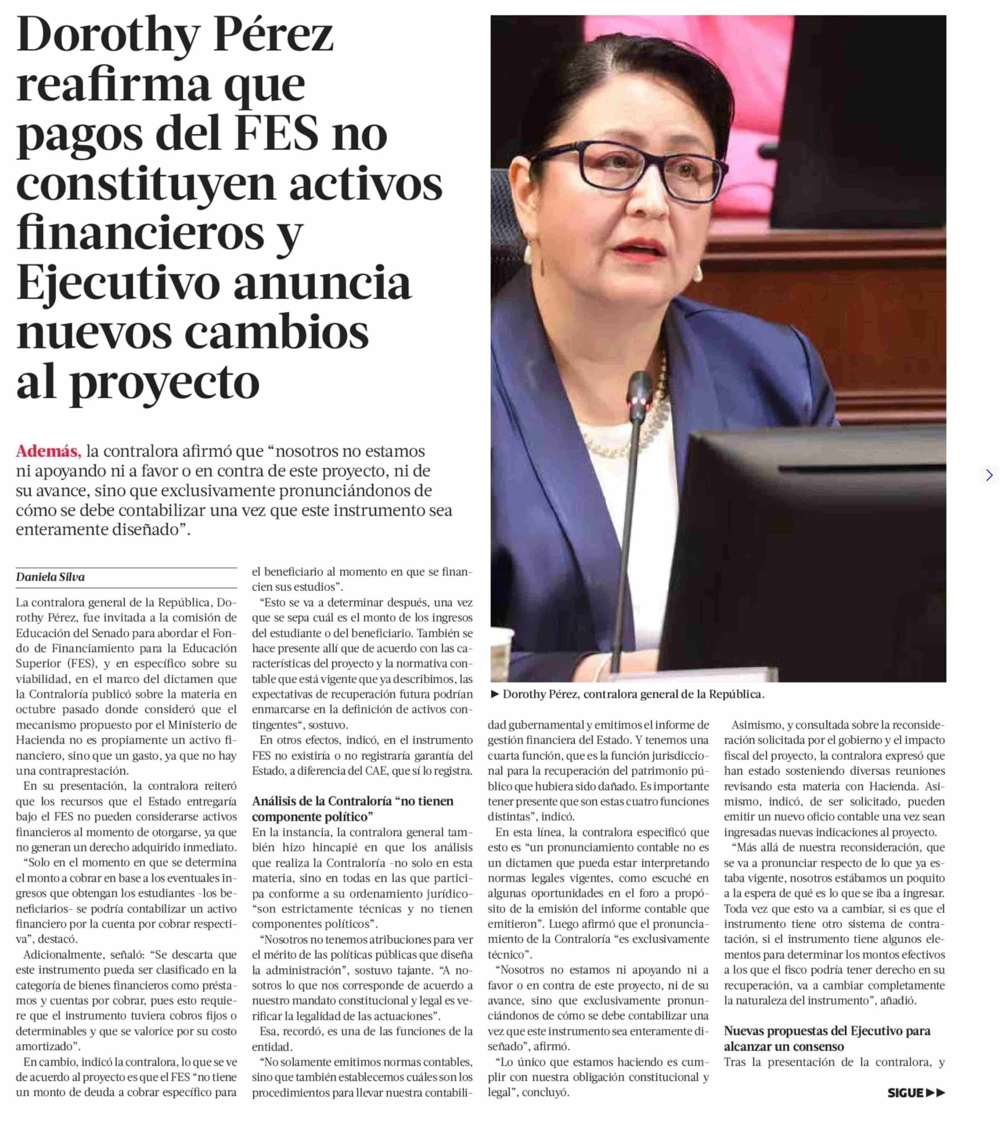 Título: Dorothy Pérez reafirma que pagos del FES no constituyen activos financieros y Ejecutivo anuncia nuevos cambios al proyecto