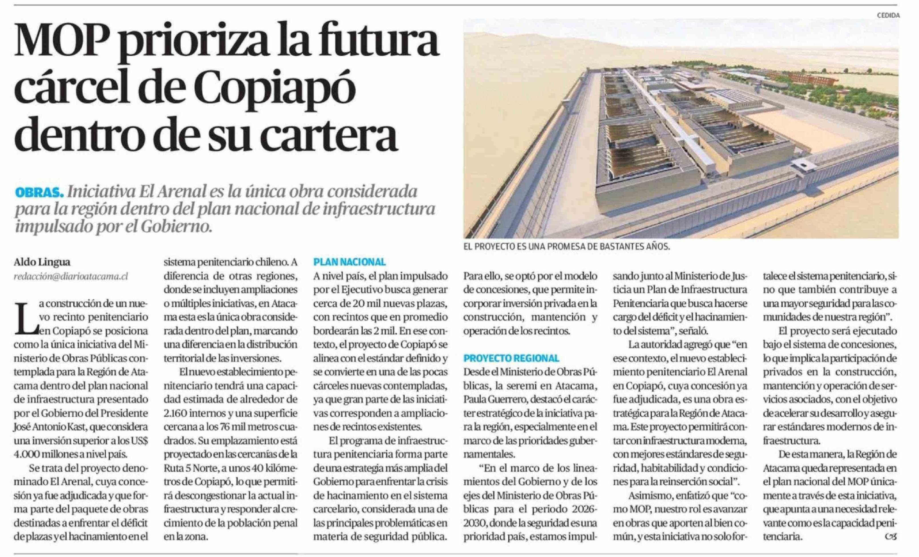 MOP prioriza la futura cárcel de Copiapó dentro de su cartera 16-04-2026 El Diario de Atacama |