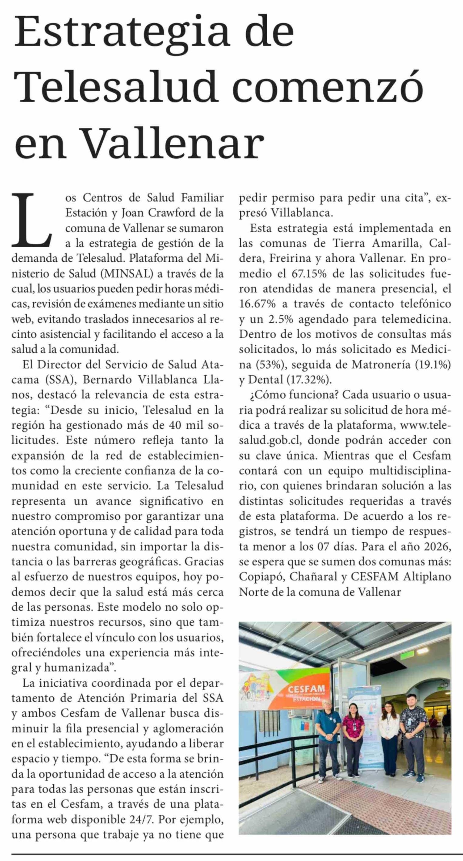 Título: Estrategia de Telesalud comenzó en Vallenar