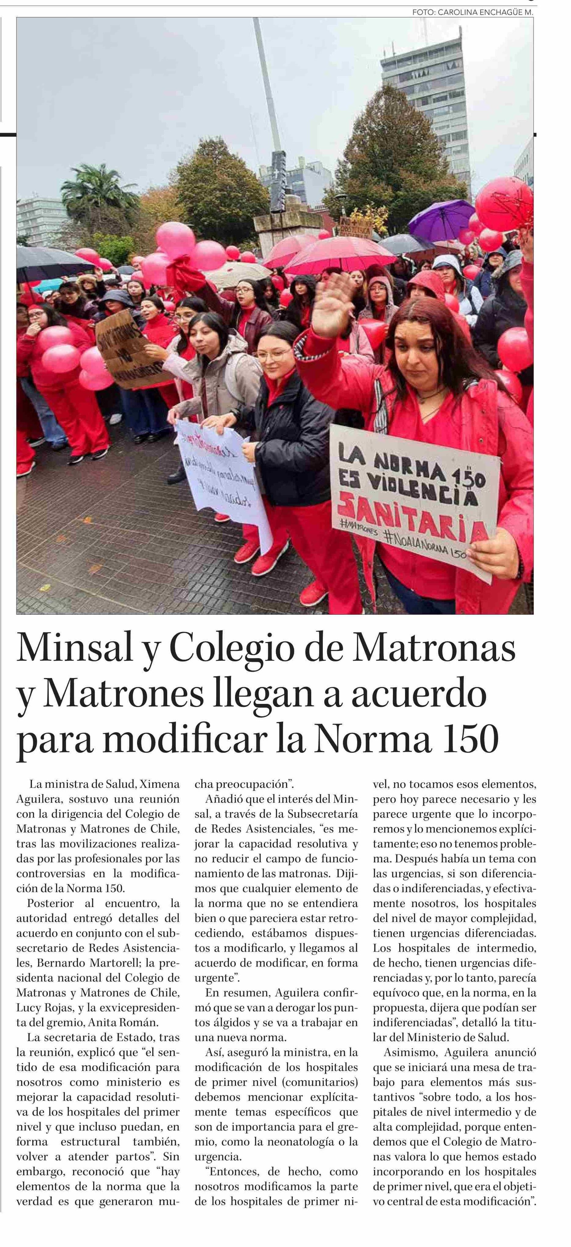 Título: Minsal y Colegio de Matronas y Matrones llegan a acuerdo para modificar la Norma 150