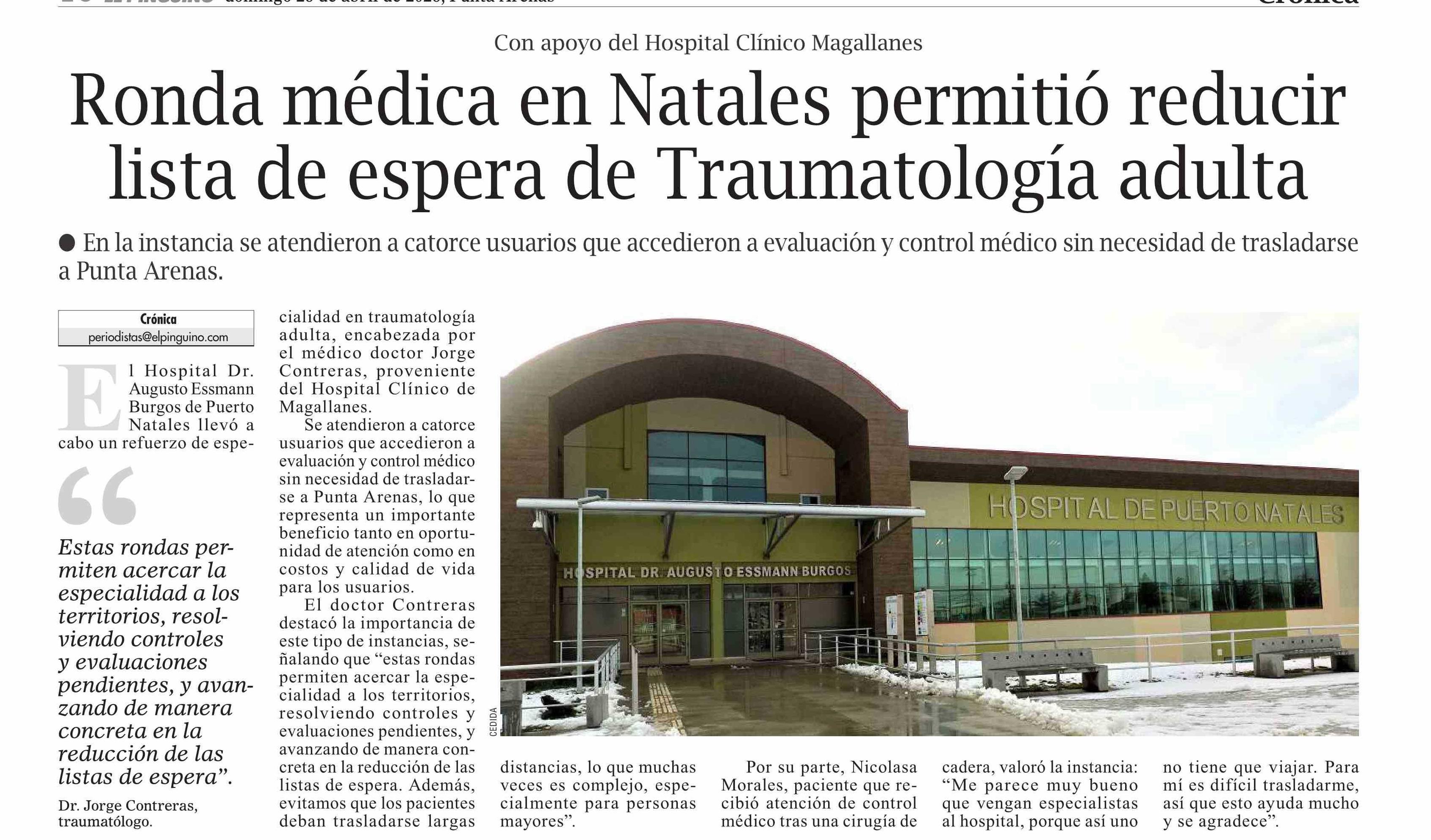 Título: Ronda médica en Natales permitió reducir lista de espera de Traumatología adulta