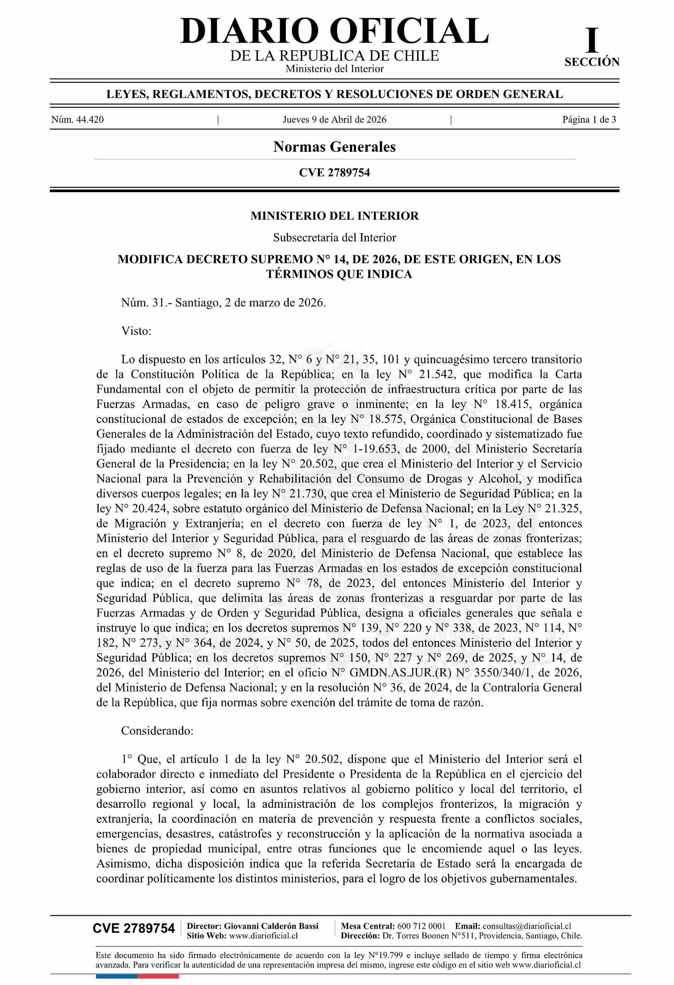 MINISTERIO DEL INTERIOR 09-04-2026 Diario Oficial Edición Electrónica |