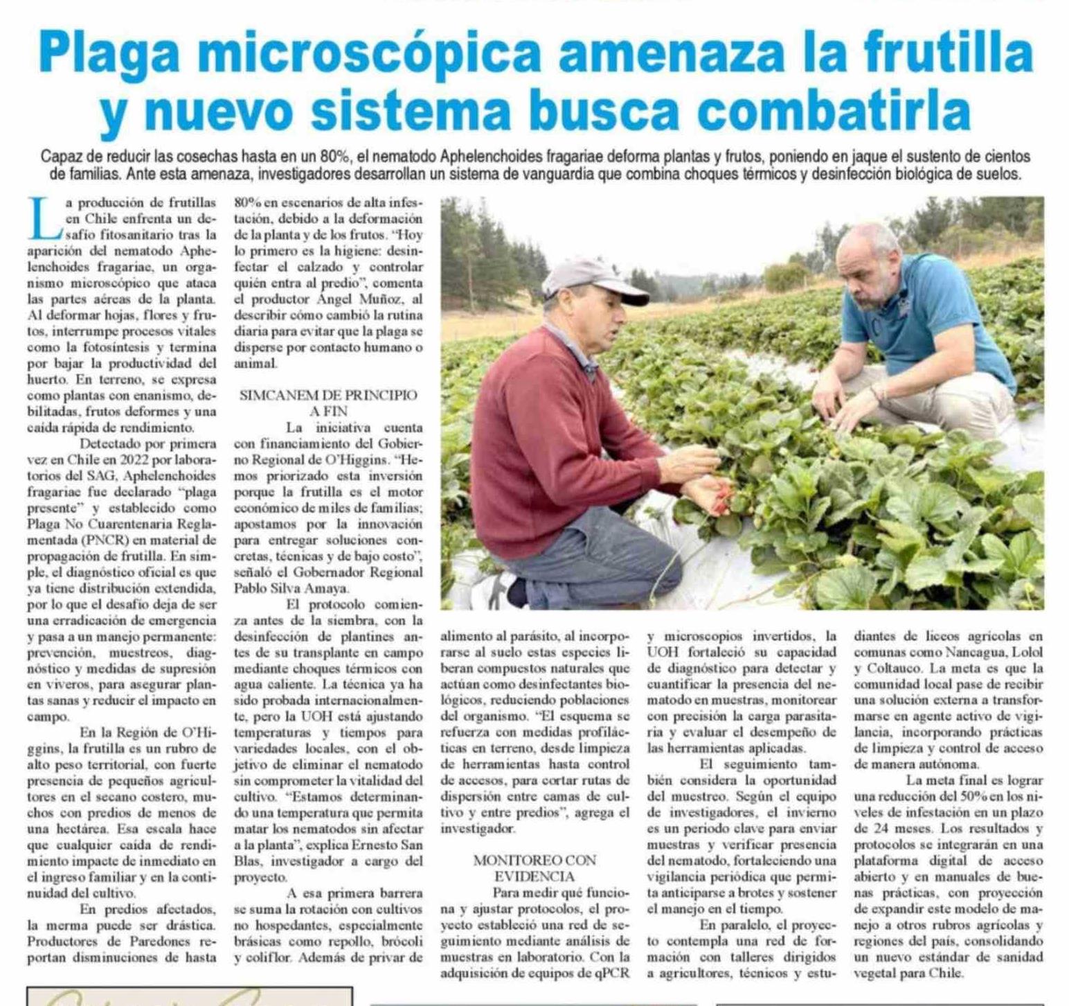 Título: Plaga microscópica amenaza la frutilla y nuevo sistema busca combatirla