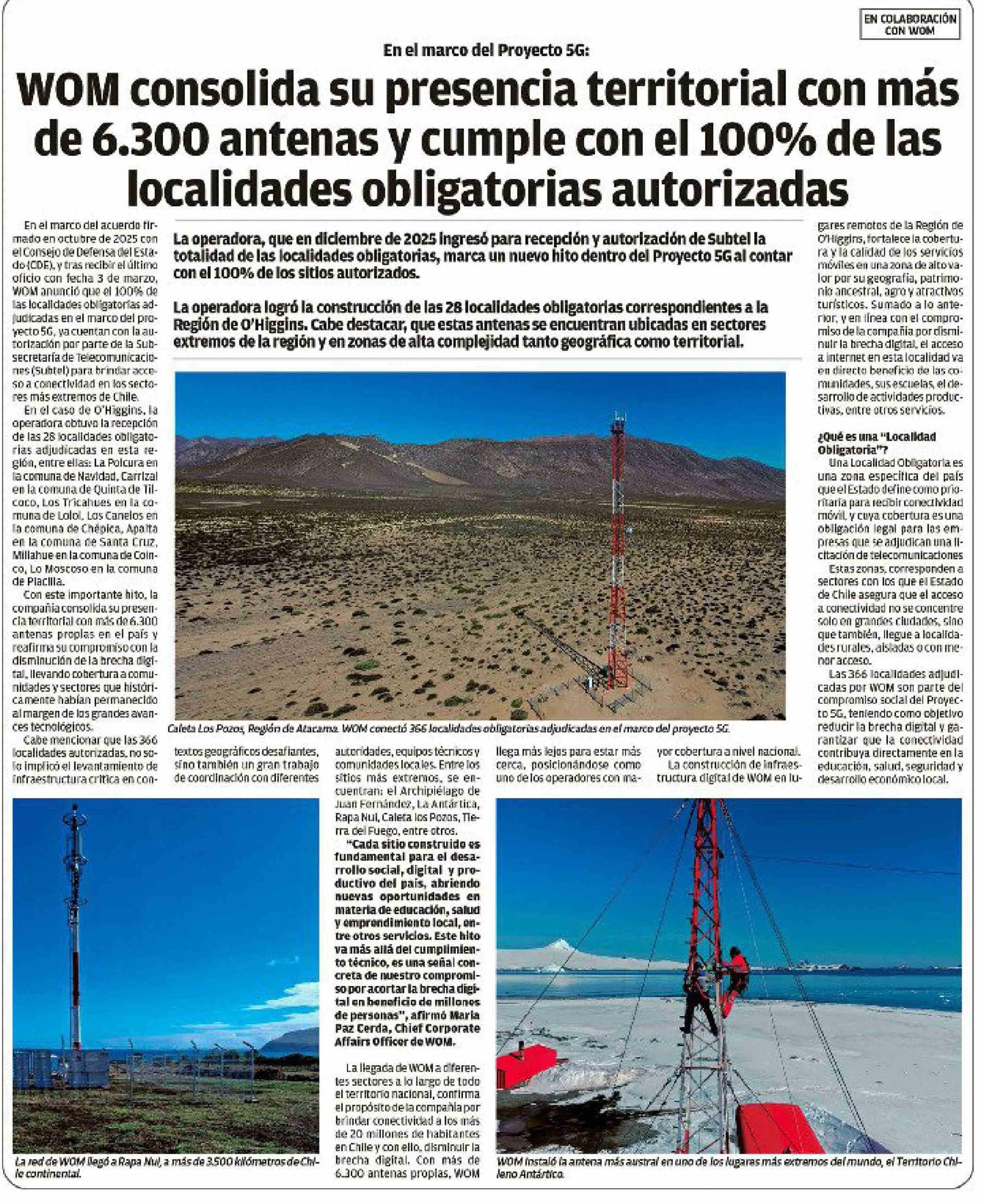 Título: WOM consolida su presencia territorial con más de 6.300 antenas y cumple con el 100% de las localidades obligatorias autorizadas
