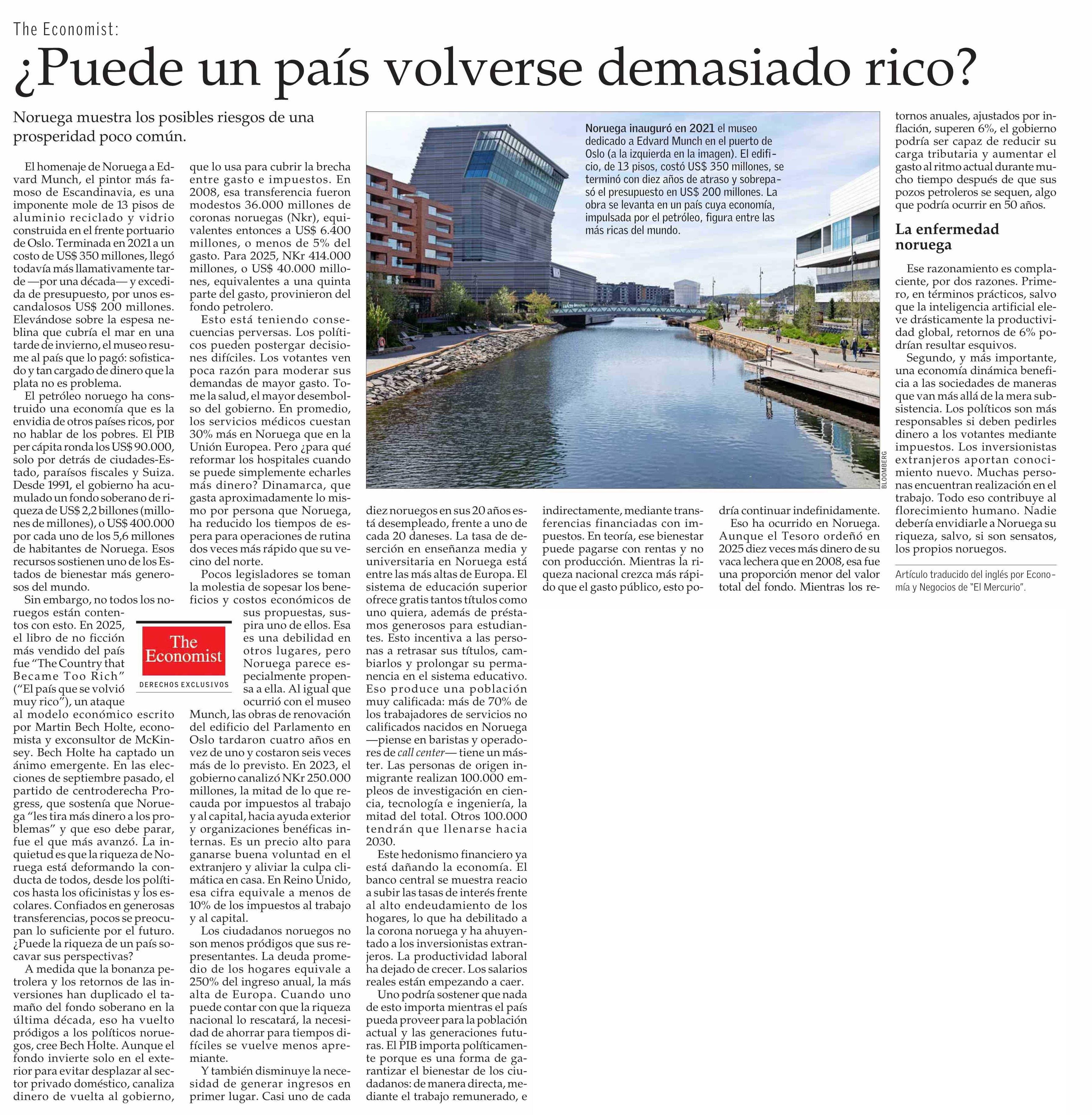 ¿Puede un país volverse demasiado rico? 08-04-2026 El Mercurio |