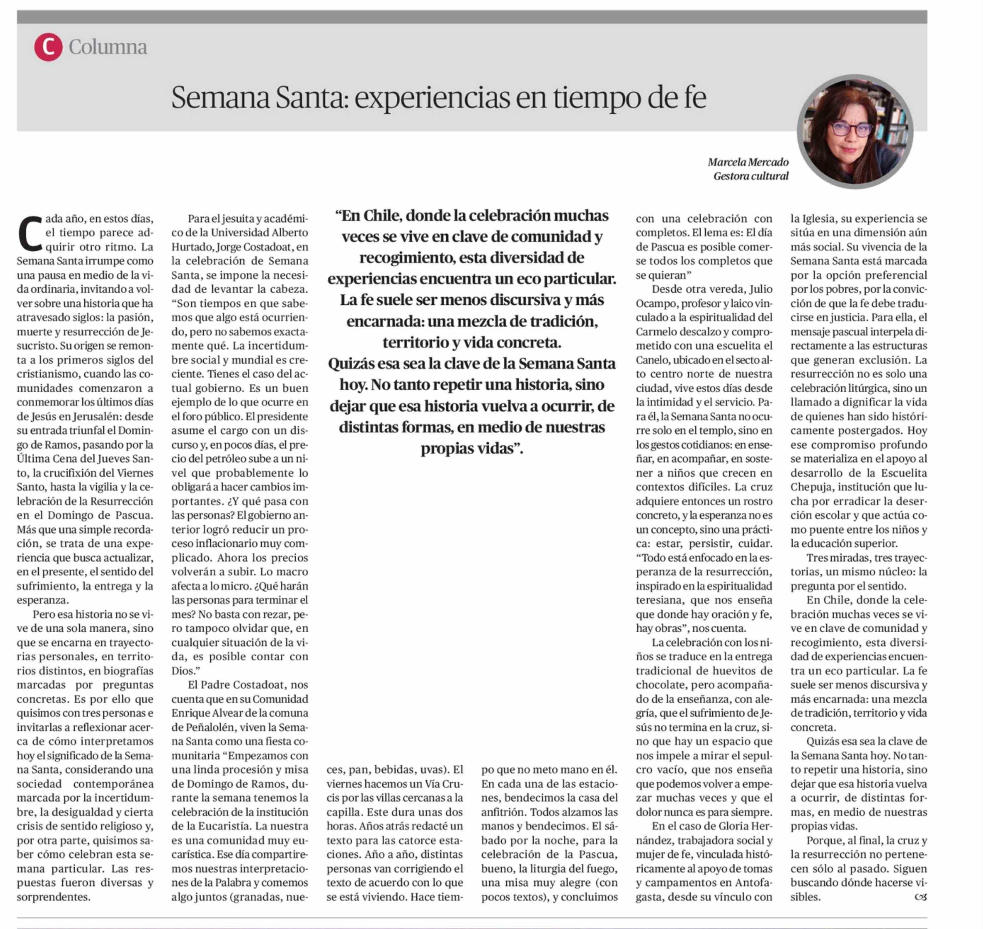 COLUMNAS DE OPINIÓN: experiencias en tiempo de fe 04-04-2026 El Mercurio de Antofagasta |