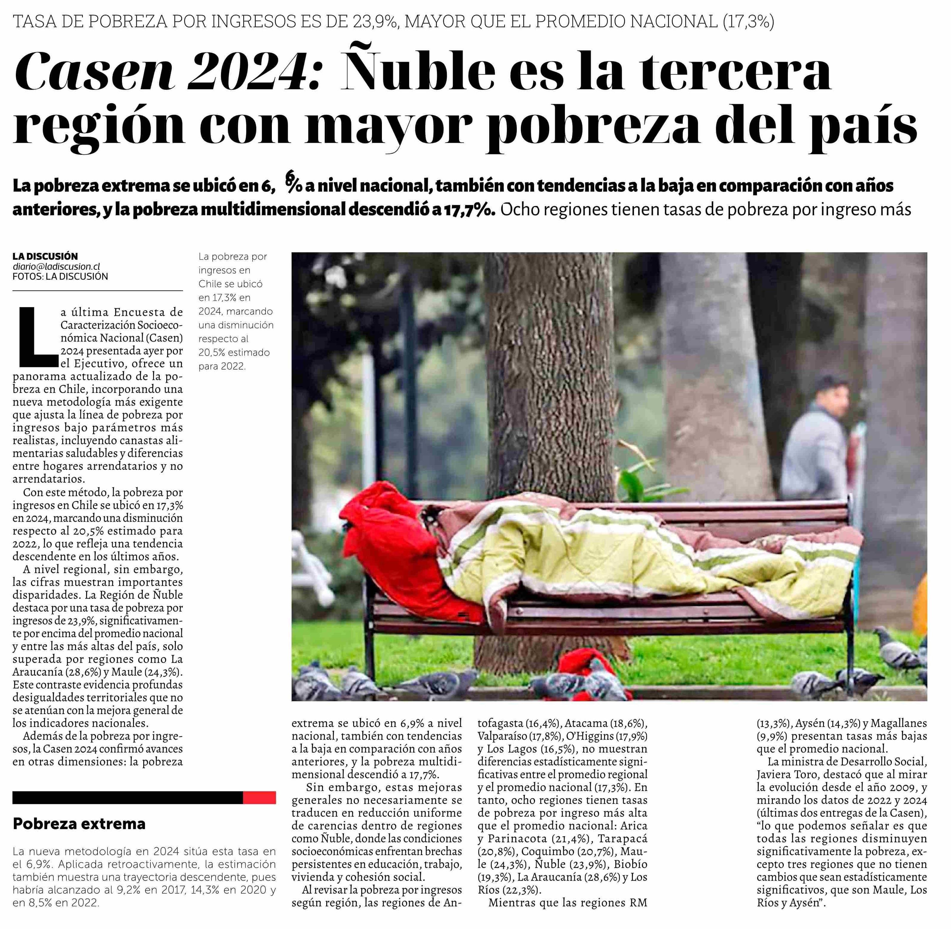 Título: Casen 2024: Nuble es la tercera región con mayor pobreza del país