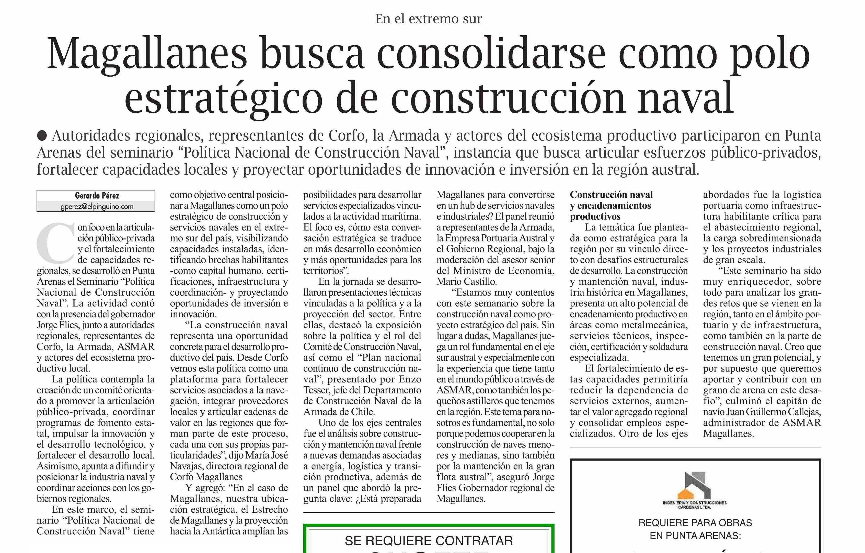| Título: | Magallanes busca consolidarse como polo estratégico de construcción naval |