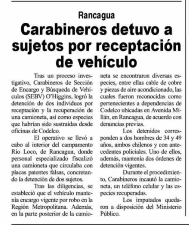 Carabineros detuvo a sujetos por receptación de vehículo 07-04-2026 Diario VI Región |