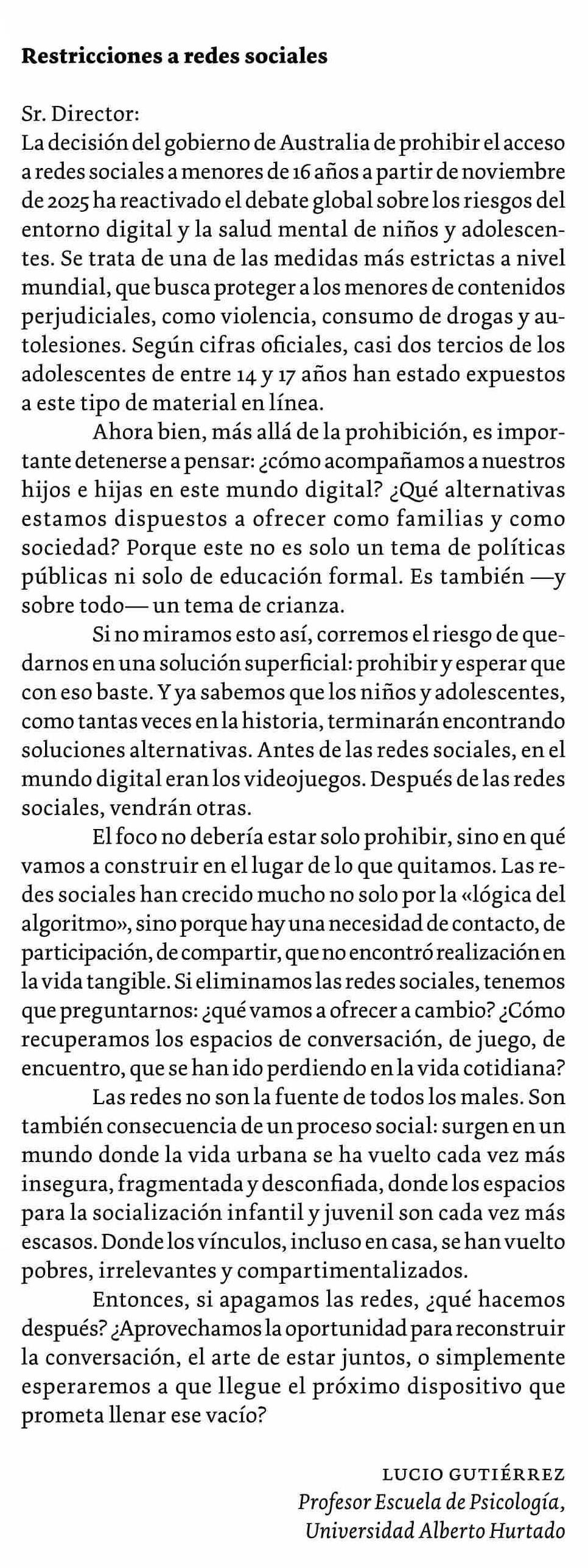 CARTAS: Restricciones a redes sociales 05-06-2025 Revista Mensaje |