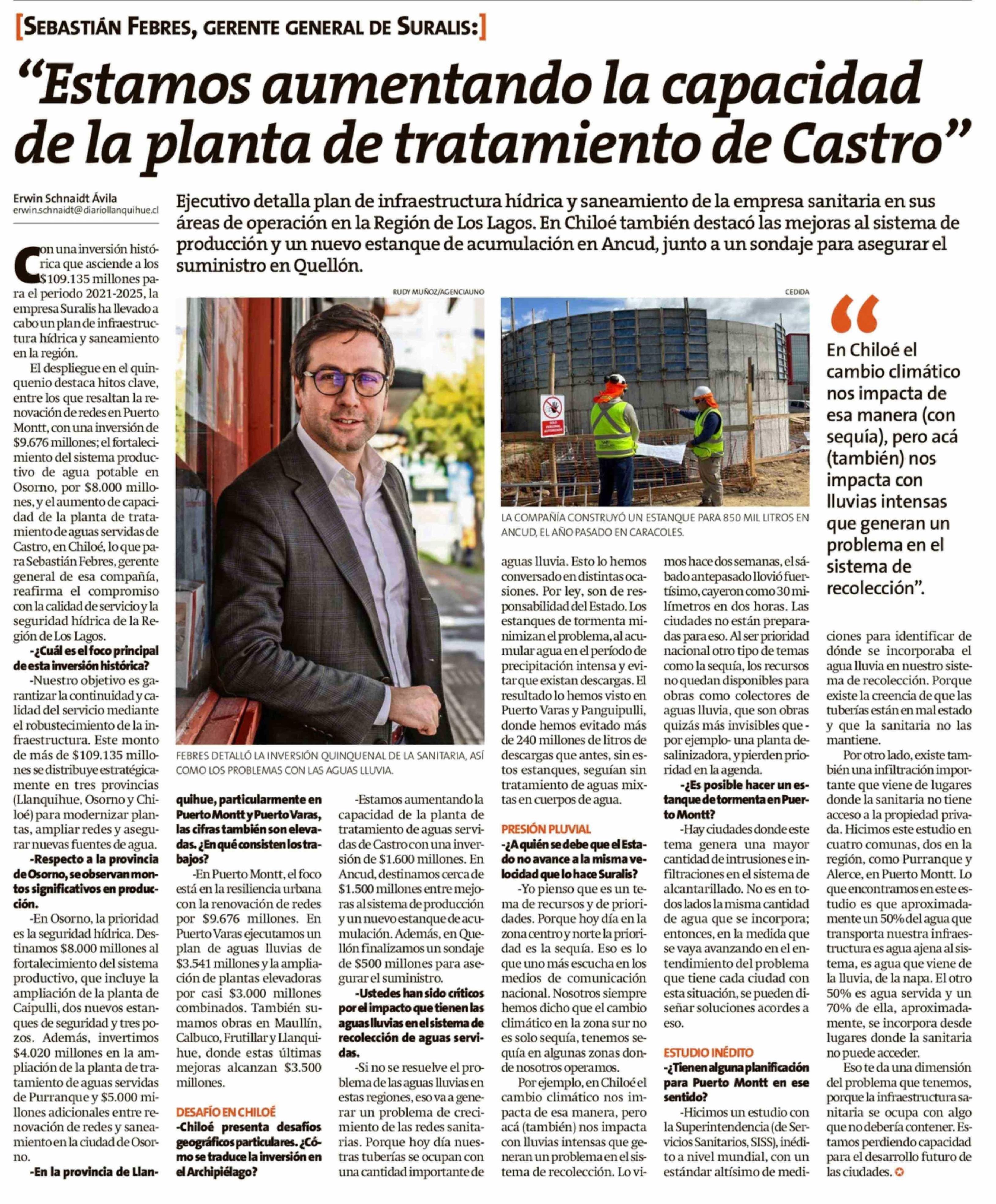 "Estamos aumentando la capacidad de la planta de tratamiento de Castro" 07-04-2026 La Estrella de Chiloé |