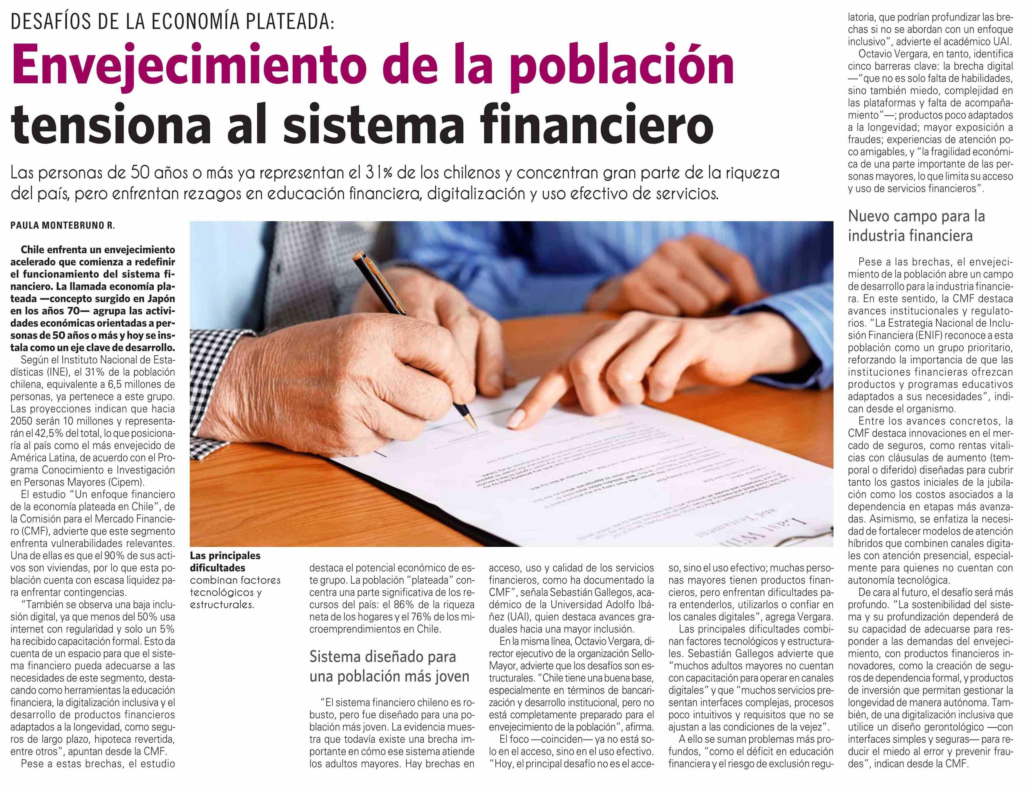 Envejecimiento de la población tensiona al sistema financiero 14-04-2026 El Mercurio |
