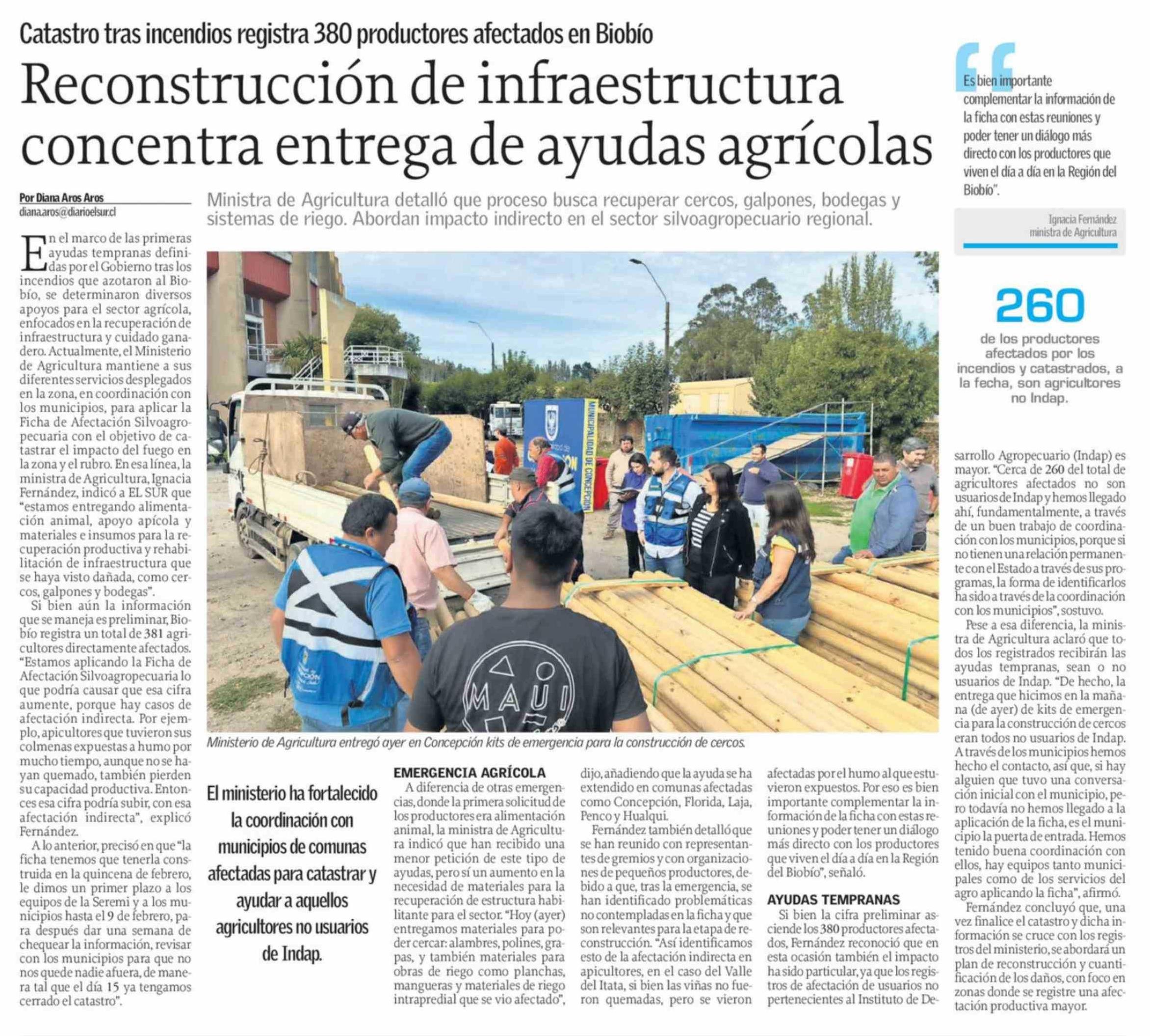 Reconstrucción de infraestructura concentra entrega de ayudas agrícolas 06-02-2026 El Sur |