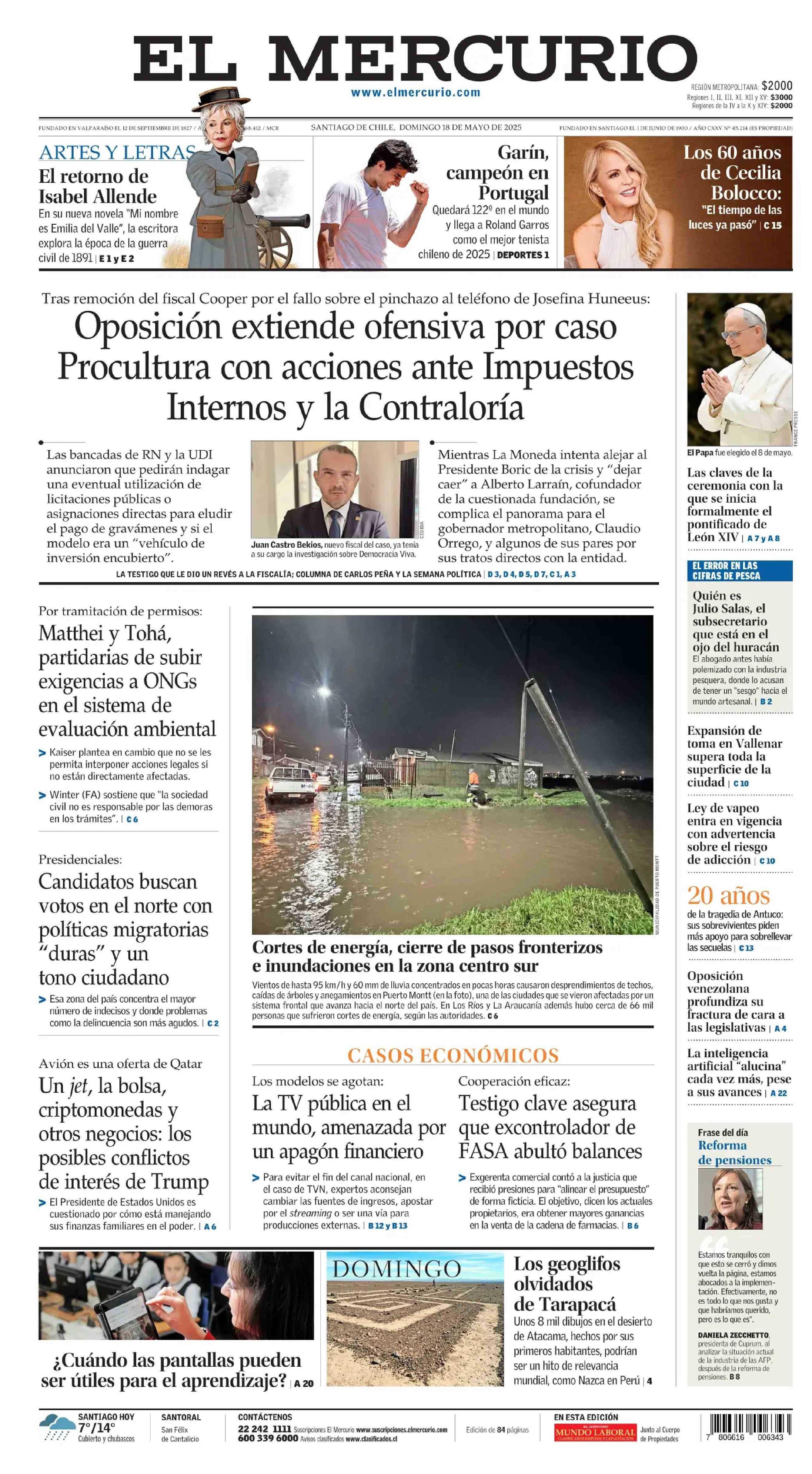 PORTADA EL MERCURIO (A) - CHILE 18-05-2025 El Mercurio |