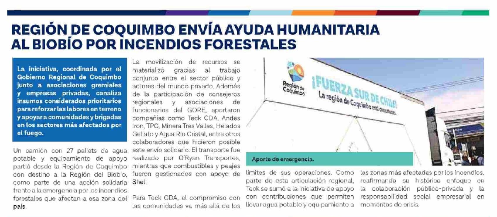Título: REGIÓN DE COQUIMBO ENVIAAYUDA HUMANITARIA AL BIOBIO POR INCENDIOS FORESTALES