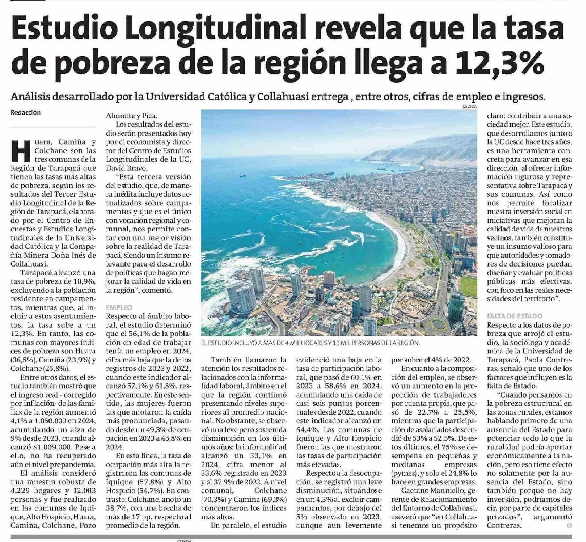 Estudio Longitudinal revela que la tasa de pobreza de la región llega a 12,3% 13-06-2025 La Estrella de Iquique |