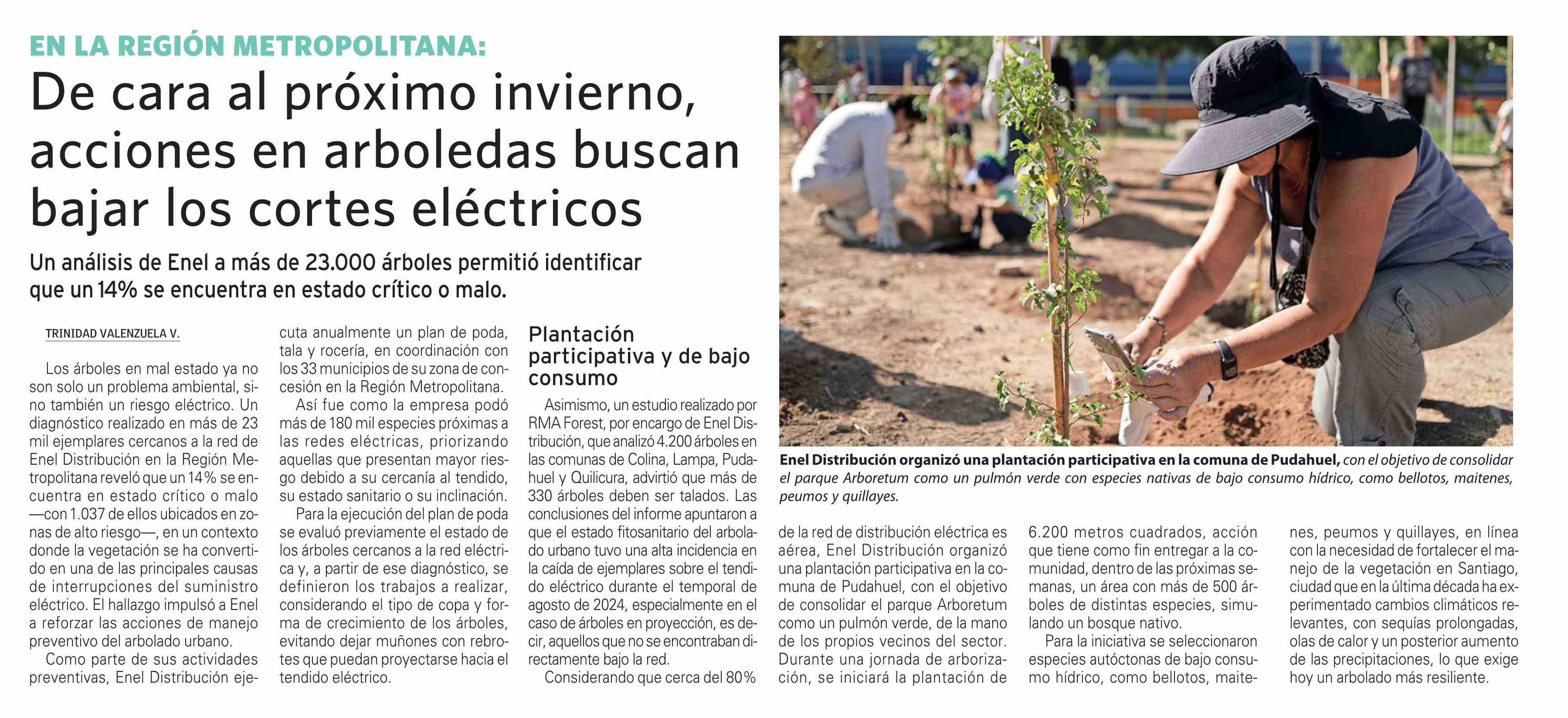 De cara al próximo invierno, acciones en arboledas buscan bajar los cortes eléctricos 11-02-2026 El Mercurio |