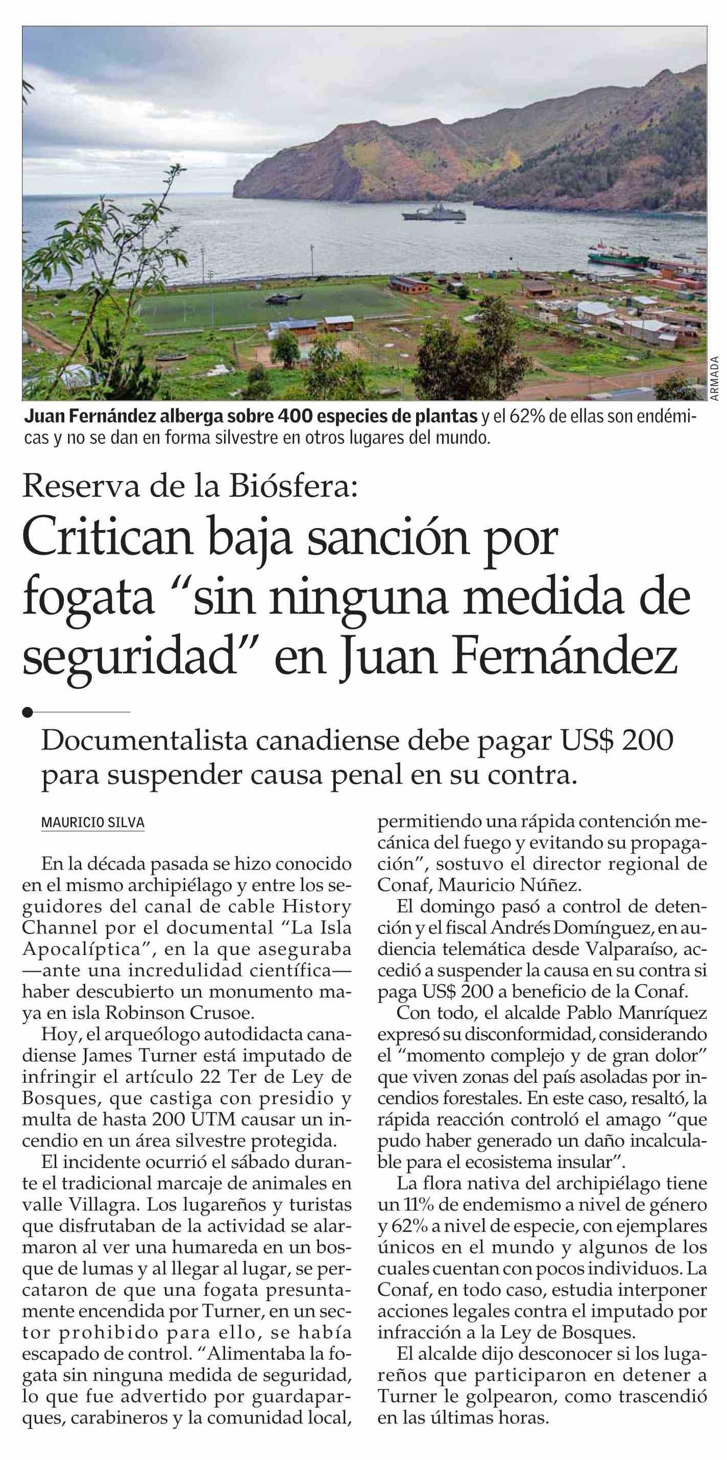 Título: Critican baja sanción por fogata “sin ninguna medida de seguridad” en Juan Fernández