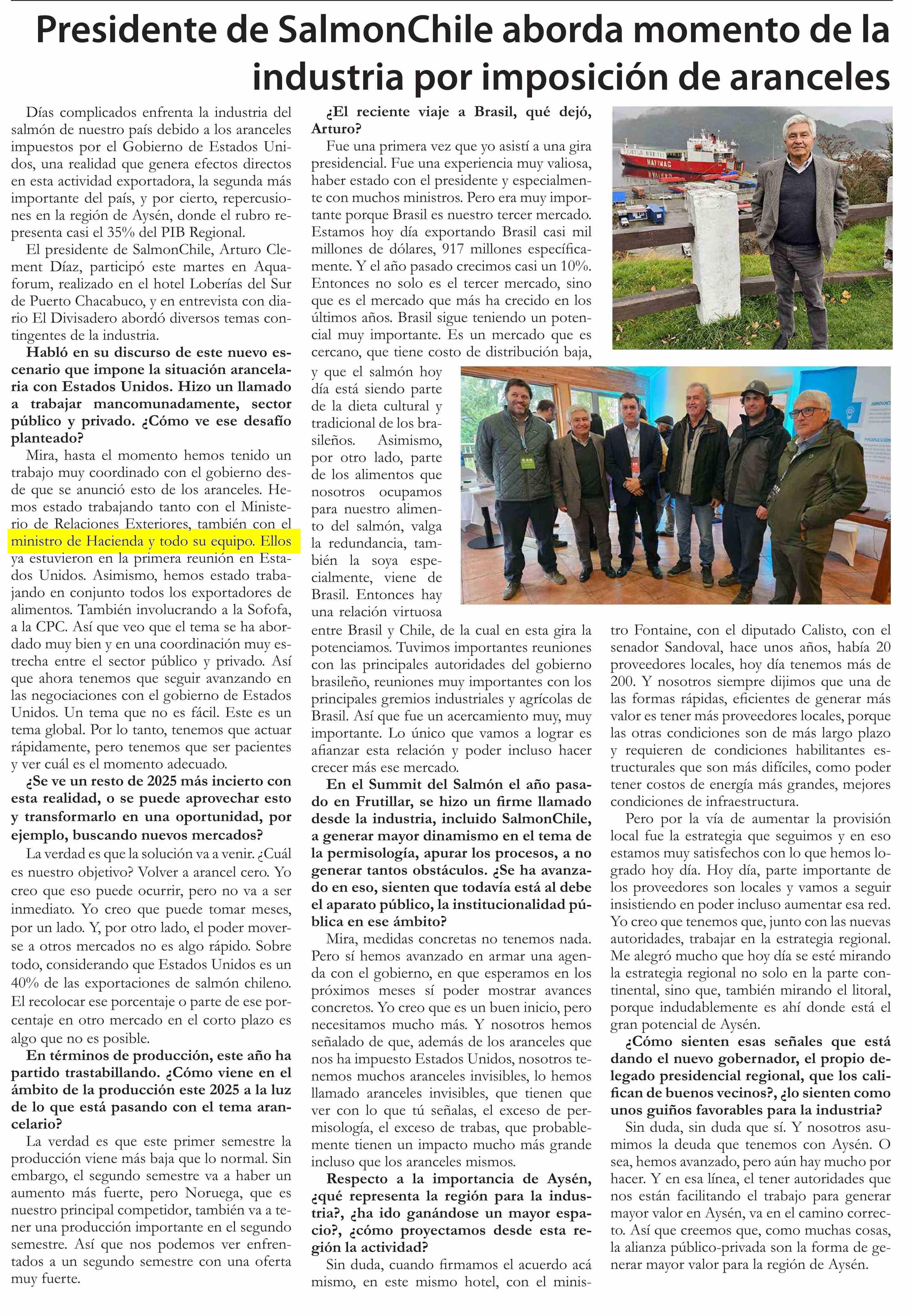 Presidente de SalmonChile aborda momento de la industria por imposición de aranceles 30-04-2025 El Divisadero |