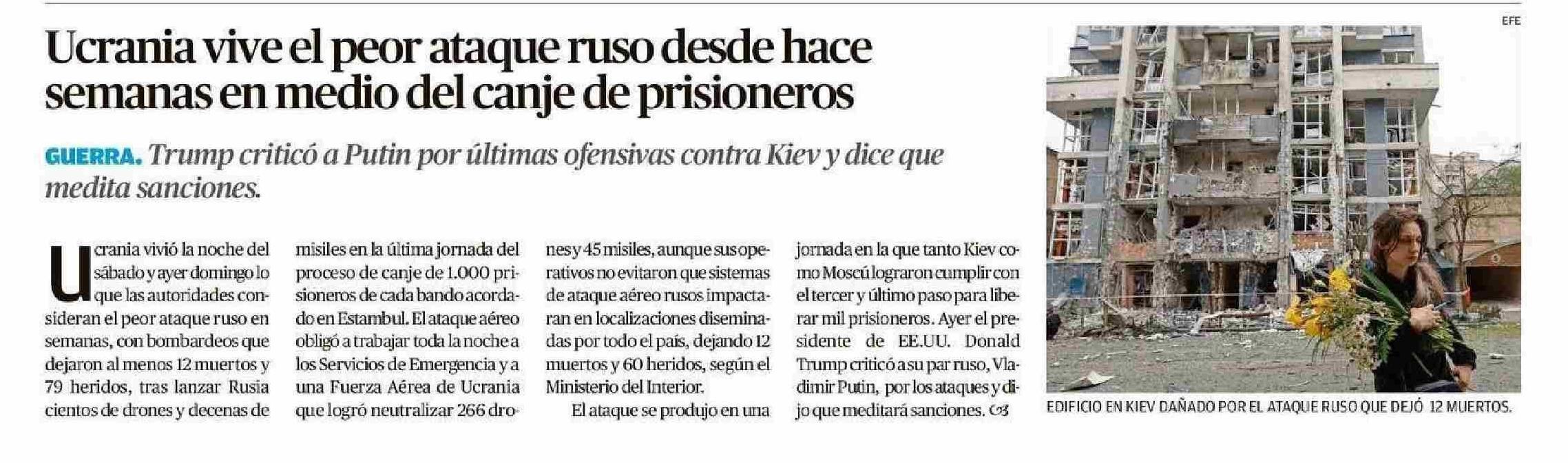 Ucrania vive el peor ataque ruso desde hace semanas en medio del canje de prisioneros 26-05-2025 El Austral de Osorno |